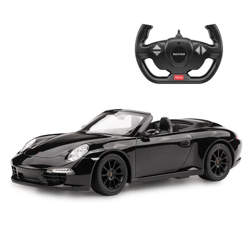 Copilul dumneavoastra se poate juca in voie cu masina cu telecomanda Porsche Carrera S, scara 1 la 12 , oferita de brandul international Rastar. Nicio cursa nu este imposibil de castigat cu acesta masinuta, replica oficiala cu licenta a modelului original, construita cu mare atentie la detalii. Masinuta are proportiile ideale pentru momente pline de distractie si amuzament, avand dimensiunile in centimetri dupa cum urmeaza 40.3*18.9*10.2.Masinuta functioneaza pe frecventa de 27.145Mhz.Alimentarea se face astfel pentru masinuta sunt necesare 5 baterii tip AA , iar pentru telecomanda 1 tip 9V.Masinuta se poate deplasa in toate directiile inainte, inapoi, stanga sau dreapta. Masina cu telecomanda Porsche Carrera S, scara 1 la 12 , poate rula cu o viteza aproximativa de 10km/h, are tractiune 2WD, anvelope de cauciuc, posibilitate de reglaj a directiei direct pe sasiu si o raza de actiune a telecomenzii de circa 20 de metri.Acesta masinuta are si o functie suplimentara care face ca farurile si stopurile masinutei sa lumineze.