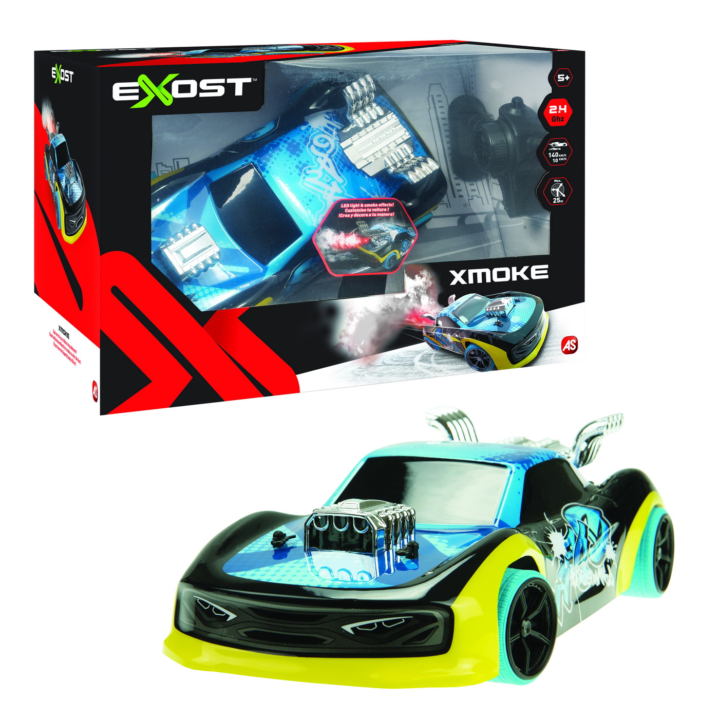 Masinuta cu telecomanda marca EXOST, construita pe o scara de 114, cu transmisie 2,4GHZ si 2 lumini LED pentru efecte adevarate de fum si efect de miscare. Cu un design urban nou, modern si fum controlat cu telecomanda. Varsta recomandata 5+. Functioneaza cu baterii 5xAA (nu sunt incluse) pentru vehicul, 2xAA (nu sunt incluse) pentru telecomanda.