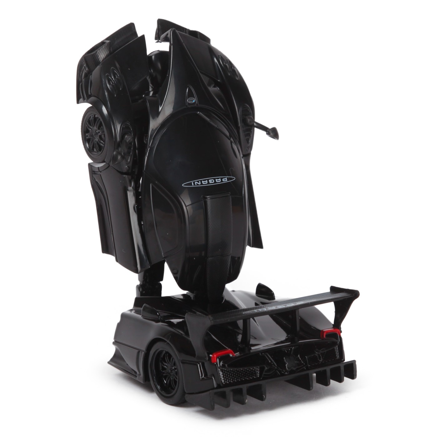 Această mașinuță convertibilă Pagani Zonda R, în varianta elegantă negru metalic, combină stilul sofisticat al unui supercar cu surpriza spectaculoasă a unui robot de acțiune!