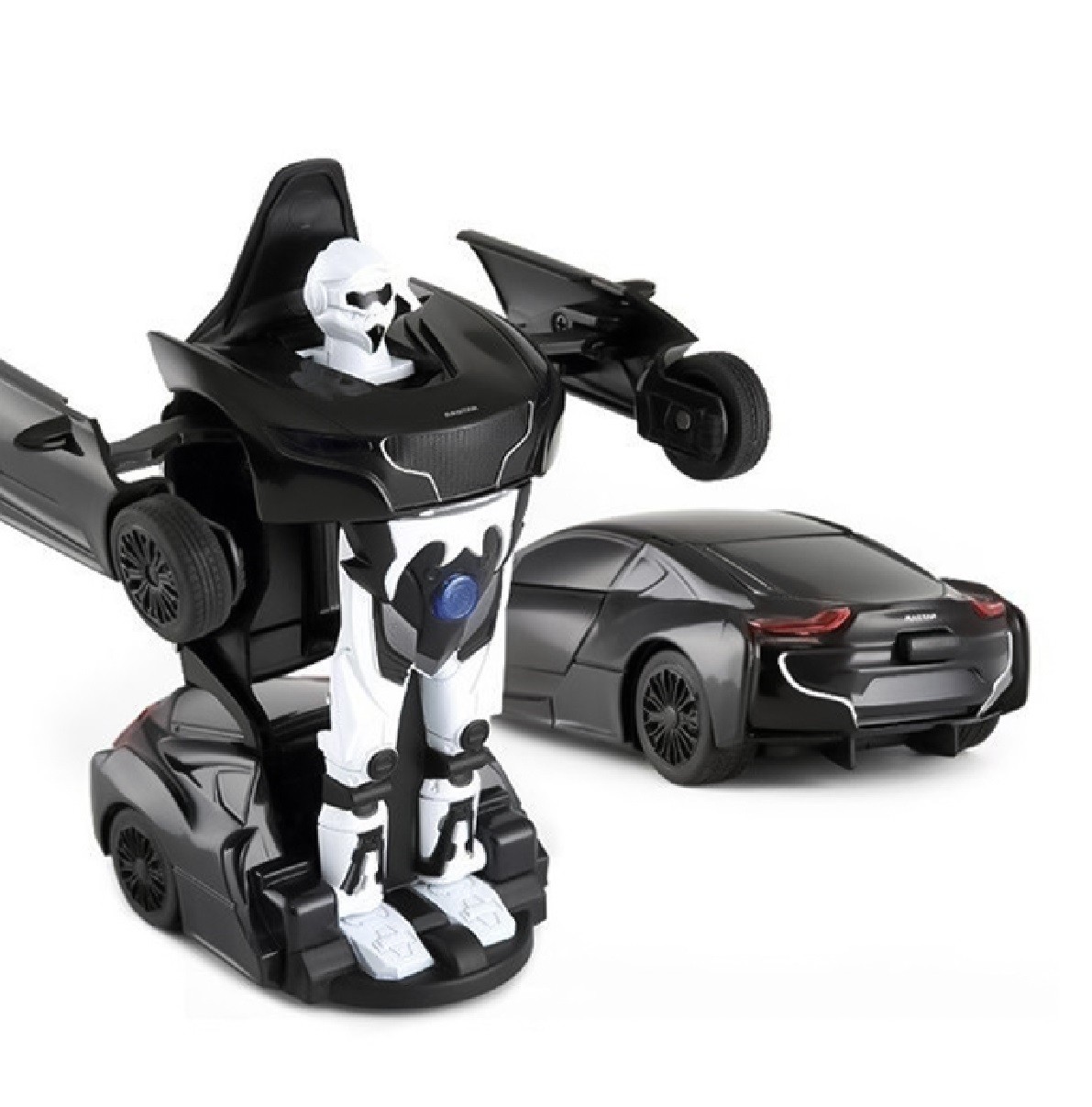 O mașinuță cu stil care se transformă într-un robot puternic! Efecte luminoase, sunete și o caroserie alb-negru care cucerește din prima clipă. 🤖✨