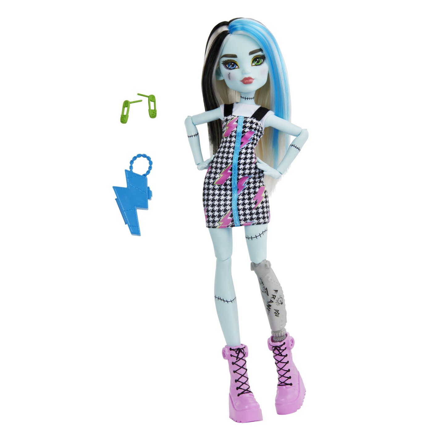 Faceti cunostinta cu elevii scolii legendare pentru monstri cu papusi Monster High! Aspectul lor nebun de cool este completat de accesorii asortate, cum ar fi o geanta originala si pantofi la moda. Acest lucru va ofera si mai multe oportunitati de a juca si de a crea povesti infricosatoare cu prietenii tai monstri! Daca colectezi intreaga colectie, jocul va deveni si mai interesant! Setul include papusa, rochie, pantofi, geanta, accesorii. Fantastic Frankie, caruia ii place sa experimenteze culorile, combinand armonios albul, negru, albastru si roz pentru a arata cat mai unic.