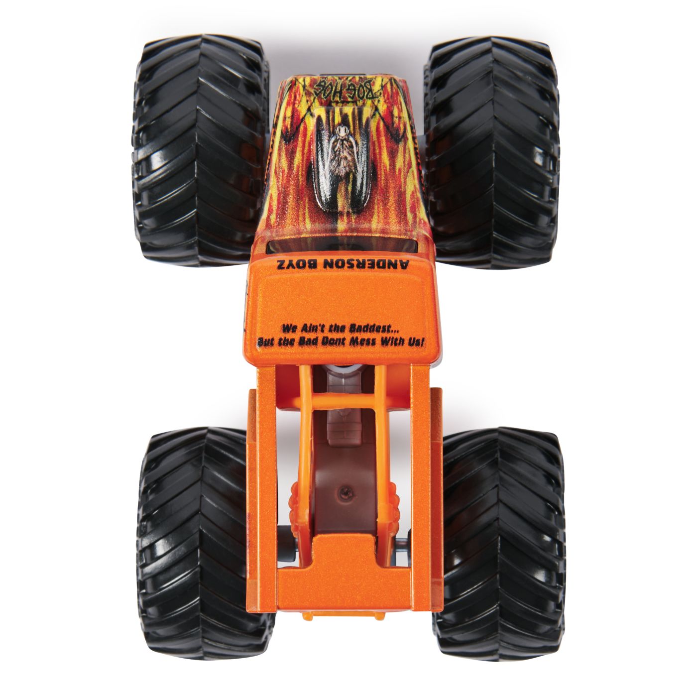 Fiecare camion este echipat cu anvelope oficiale BKT, jante stilizate și șasiu rezistent, inspirat din designul real al monștrilor de pe pistele Monster Jam. Caroseria turnată prin injecție asigură rezistență și un aspect premium.