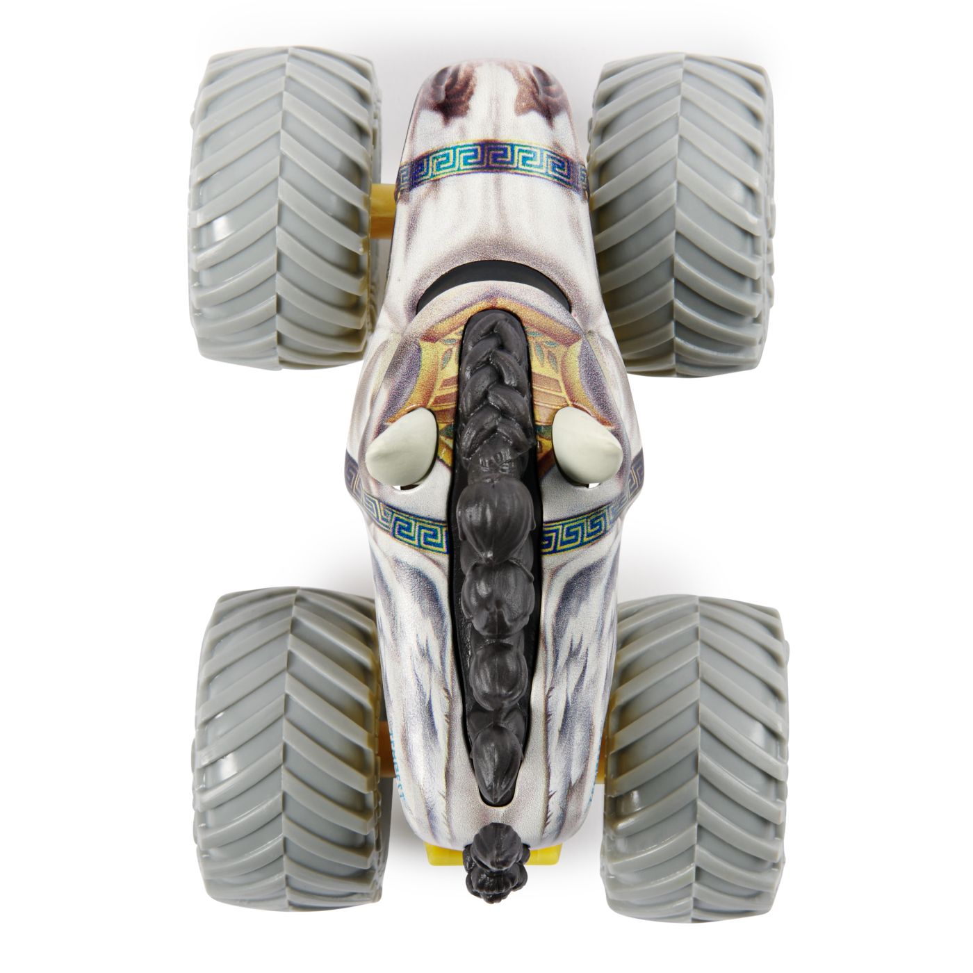 Anvelopele oficiale BKT, jantele stilizate și șasiul turnat din metal oferă durabilitate și un aspect identic cu modelele folosite în competițiile reale Monster Jam. Fiecare vehicul este pregătit pentru impact și acțiune intensă.