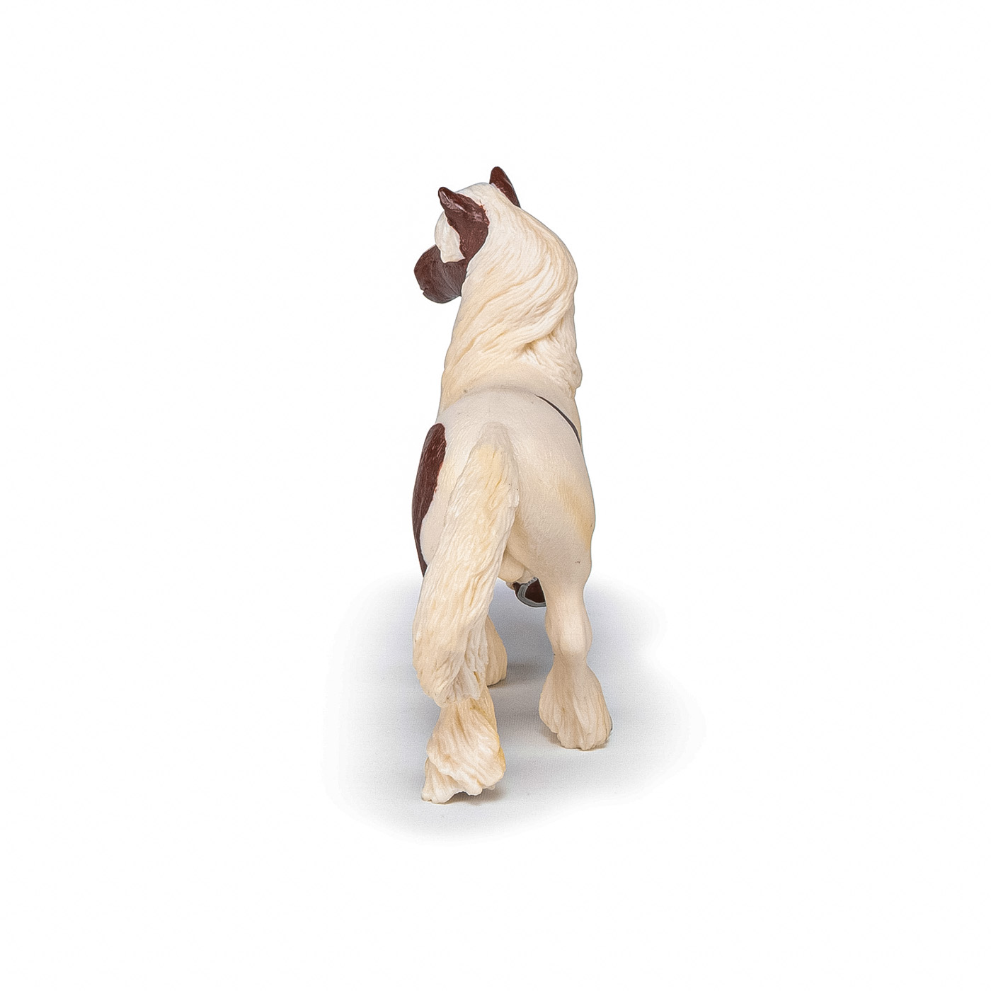 Faceti o plimbare prin campuri cu ecvinele Papo, participati la concursuri de sarituri sau chiar la cursuri de dresaj. Gypsy Cob, Irish Cob sau Tinker este o rasa din Irlanda si Anglia. Este unul dintre cei mai recunoscuti cai de rasa datorita blanii sale, capului sau ridicat si mandru, liniei sale superioare.Este acum cautat pentru capacitatea sa de a se adapta la majoritatea disciplinelor de calarie. Produsul are urmatoarele dimensiuni 13 x 4 x 12cm si este recomandat copiilor cu varsta peste 3 ani. De mai bine de 20 de ani, Papo inoveaza constant si ii face pe copii din intreaga lume sa viseze cu o gama bogata de peste 600 de produse, reprezentand 12 lumi, animale si personaje. De la modelul original la serie, fiecare dintre figurinele Papo a fost conceputa si creata in Franta pentru a fi fabricata intr-o permanenta preocupare pentru calitate. Pictate manual, atentia la detalii este acum recunoscuta. Figurinele Papo se disting prin acuratete si realism, detaliile sunt de asa natura incat am putea crede ca se vor pune in miscare.