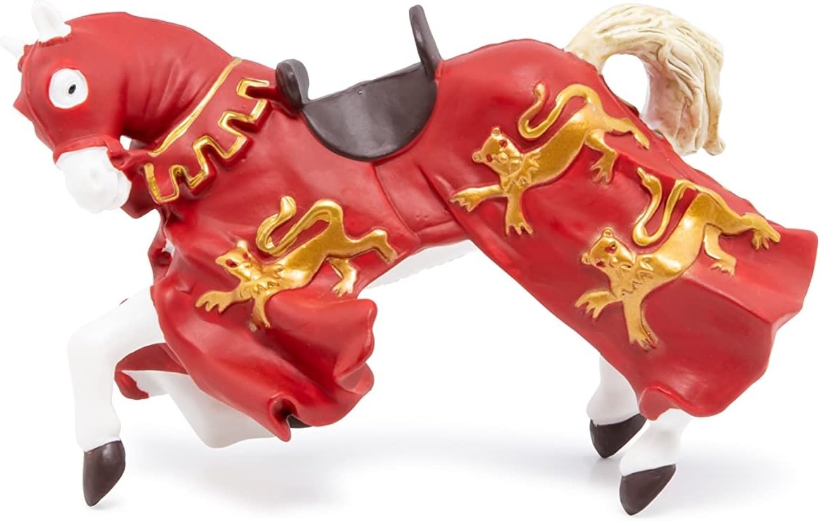 Cu figuri fantastice ale lumii, vei calaretui dragoni, vei lupta alaturi de orci si centauri si vei lupta impotriva puternicului minotaur. Cu figurinele lumii medievale traiesc batalii epice, apara-ti regatul impotriva inamicului sau infrunta cavaleri intr-un duel. Pentru un copil pasionat de cavaleri, figurina Calul Regelui Richard poate fi cel mai de pret cadou primit vreodata. Produsul are urmatoarele dimensiuni 12.5 x 5.2 x 7.3cm si este recomandat copiilor cu varsta peste 3 ani. De mai bine de 20 de ani, Papo inoveaza constant si ii face pe copii din intreaga lume sa viseze cu o gama bogata de peste 600 de produse, reprezentand 12 lumi, animale si personaje. De la modelul original la serie, fiecare dintre figurinele Papo a fost conceputa si creata in Franta pentru a fi fabricata intr-o permanenta preocupare pentru calitate. Pictate manual, atentia la detalii este acum recunoscuta. Figurinele Papo se disting prin acuratete si realism, detaliile sunt de asa natura incat am putea crede ca se vor pune in miscare.