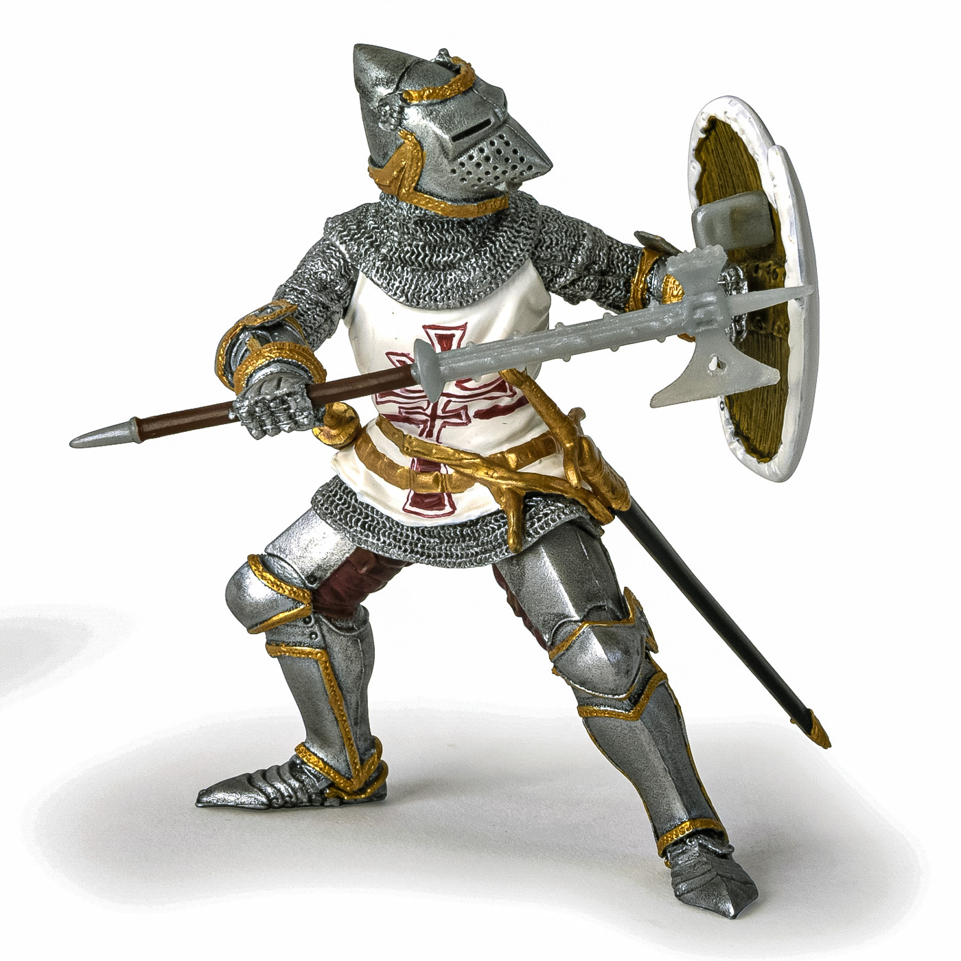 Cu figuri fantastice ale lumii, vei calaretui dragoni, vei lupta alaturi de orci si centauri si vei lupta impotriva puternicului minotaur. Cu figurinele lumii medievale traiesc batalii epice, apara-ti regatul impotriva inamicului sau infrunta cavaleri intr-un duel. Figurina Papo-Cavaler teuton, este un excelent cadou pentru cei carora le place lumea cavalerilor teutoni Ordinul Cavalerilor Teutoni este un ordin religios german catolic format la sfarsitul secolului al XII-lea la Acra, in Palestina. in Evul Mediu, ordinul era unul religios-militar cruciat. Cavalerii teutoni purtau vesminte albe prevazute cu o cruce neagra. Denumirea lor propriu-zisa este Ordinul Cavalerilor Sfintei Marii din Ierusalim. De la inceputul secolului al XIV-lea, cavalerii teutoni au devenit o putere militara si financiara de prim rang, ajungand la apogeu sub marele maestru W. von Kniprode (1351-1382). Rolul Cavalerilor Teutoni in istorie a fost adeseori supraestimat in beneficiul fictiunii si a construirii legendei din jurul lor. Totusi putina lume stie ca ei au fost desfiintati de Napoleon, persecutati de Hitler, dar au reaparut imediat dupa terminarea celui de-al Doilea Razboi Mondial. Produsul are urmatoarele dimensiuni 7.2 x 8.6 x 8.8cm si este recomandat copiilor cu varsta peste 3 ani. De mai bine de 20 de ani, Papo inoveaza constant si ii face pe copii din intreaga lume sa viseze cu o gama bogata de peste 600 de produse, reprezentand 12 lumi, animale si personaje. De la modelul original la serie, fiecare dintre figurinele Papo a fost conceputa si creata in Franta pentru a fi fabricata intr-o permanenta preocupare pentru calitate. Pictate manual, atentia la detalii este acum recunoscuta. Figurinele Papo se disting prin acuratete si realism, detaliile sunt de asa natura incat am putea crede ca se vor pune in miscare.