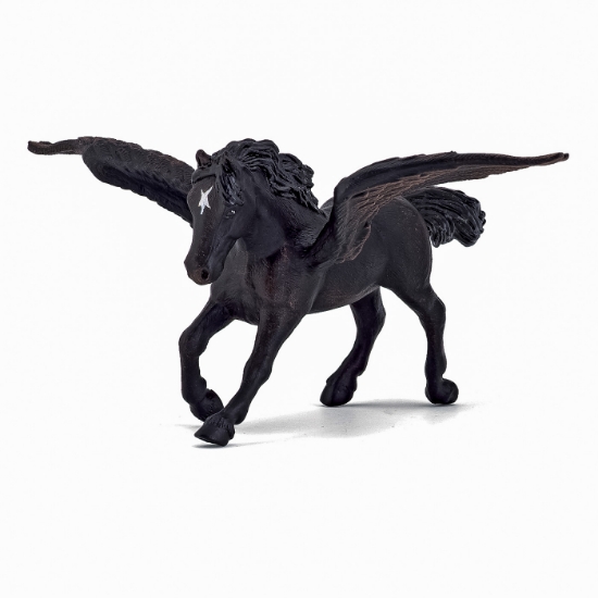 Cu figurinele lumii fermecate, descopera un univers de magie in care printesele se misca pe spatele lui Pegas si in care zanele se joaca cu spiridusii padurii. Un cal inaripat legendar, Black Pegasus este un prieten cu muzele si spiridusii. ii poarta in lupta impotriva himerei de deasupra Muntelui Olimp, unde victoria va fi cu siguranta a lor. Produsul are urmatoarele dimensiuni 17 x 23 x 10cm si este recomandat copiilor cu varsta peste 3 ani. De mai bine de 20 de ani, Papo inoveaza constant si ii face pe copii din intreaga lume sa viseze cu o gama bogata de peste 600 de produse, reprezentand 12 lumi, animale si personaje. De la modelul original la serie, fiecare dintre figurinele Papo a fost conceputa si creata in Franta pentru a fi fabricata intr-o permanenta preocupare pentru calitate. Pictate manual, atentia la detalii este acum recunoscuta. Figurinele Papo se disting prin acuratete si realism, detaliile sunt de asa natura incat am putea crede ca se vor pune in miscare.
