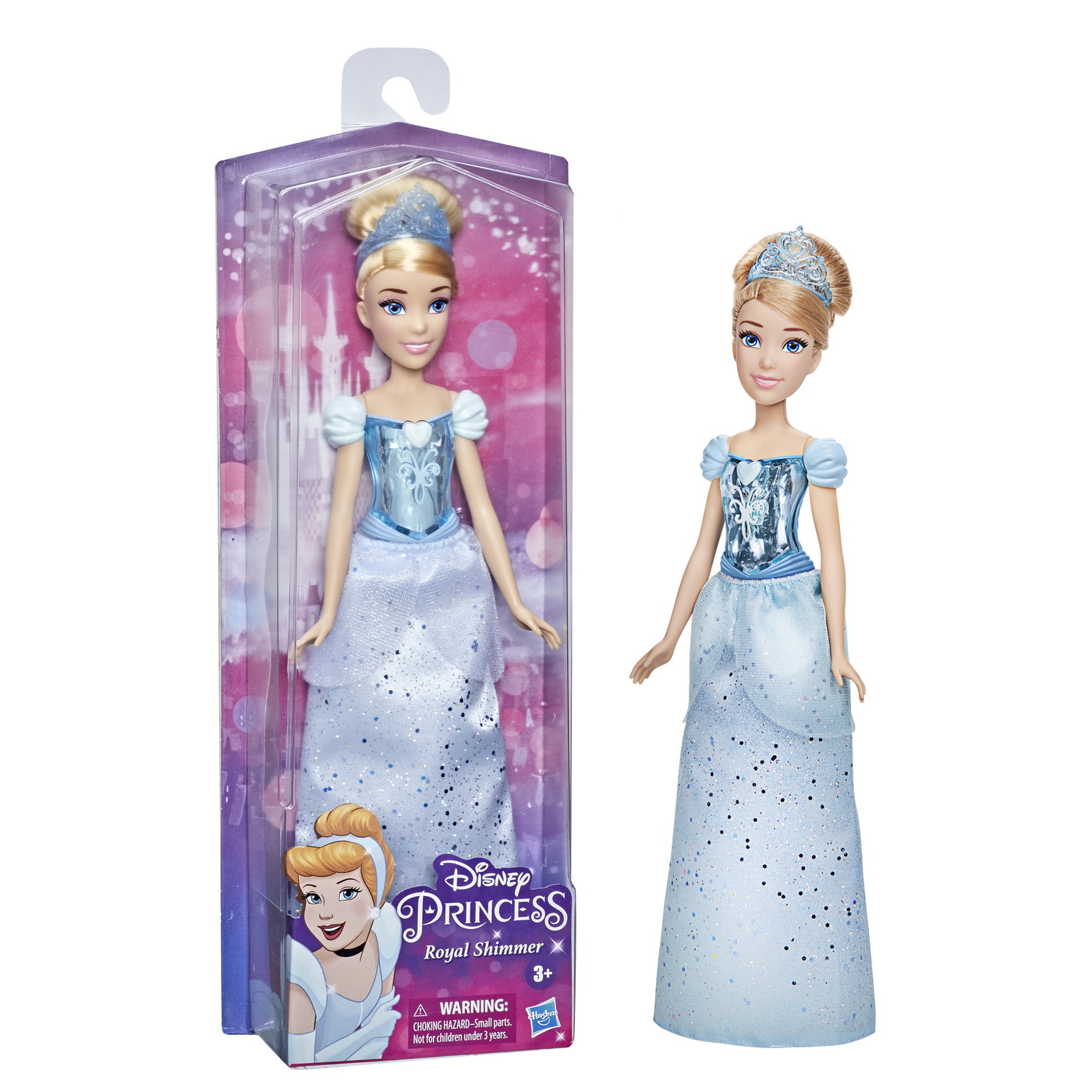 Printesa este stralucitoare intr-o tinuta cu sclipici de sus pana jos! Micuta ta visatoare va adora sa joace momentele magice din filmele Disney, dar si sa isi creeze propria poveste magica.In filmul de animatie clasic Disney, bunatatea, eleganta si curajul Cenusaresei ii transforma visurile in realitate gratie magiei nasei zane si cu putin ajutor de la prietenii sai soareci, Jaq si Gus. Cu aceasta papusa Disney Princess Royal Shimmer, copiii isi pot imagina cum Cenusareasa isi transforma visele in realitate recreand momente favorite din film sau imaginandu-si propriile aventuri. Inspirata de personajul clasic de animatie, aceasta papusa Disney este insotita de o fusta si accesorii elegante pentru papusi o diadema si pantofi in culoarea albastra care o defineste. Papusa Cenusareasa reprezinta un cadou extraordinar cu ocazia zilelor de nastere sau de sarbatori pentru copii cu varsta de la 3 ani in sus si este un plus extraordinar pentru colectia de papusi Disney! Papusa Cinderella are o inaltime de aproximativ 29 de cm.