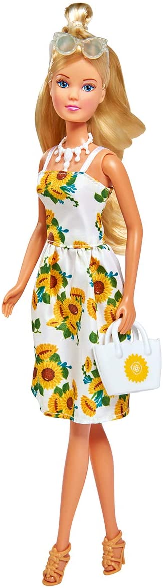 Steffi este o adevarata pasionata de moda ! Ofera-i copilului tau un partener de joaca ce ii va fii mereu alaturi. Steffi este pregatita pentru orice aventura si este iubitoare de flori si de moda. De aceea, aceasta papusa vine cu tinute cu model floral si accesorii ce ii scot ii evideta stilul vesel si feminin. Papusa Steffi poarta o rochie alba la moda, cu floricele, si ochelari de soare albi, colier alb si geantuta alba, Inaltime papusa 29cm. Papusica are un par blond, stralucior, un zambet fermecator .
