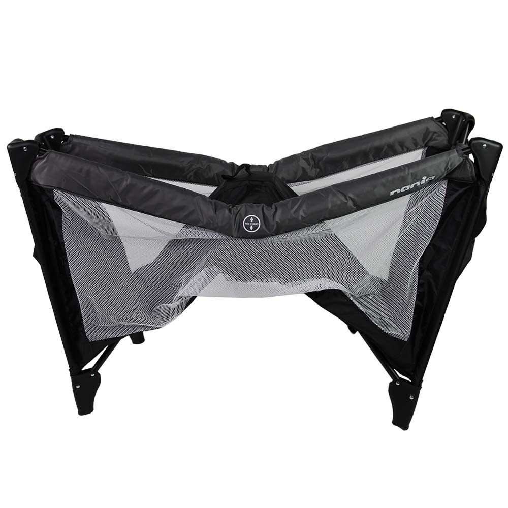 🎒 Fie că ești acasă, la bunici sau într-un city break, pătuțul Nania SODA îți oferă flexibilitate maximă, stabilitate și siguranță. Designul este prietenos, aerisit, cu plasă laterală pentru ventilare și supraveghere ușoară.