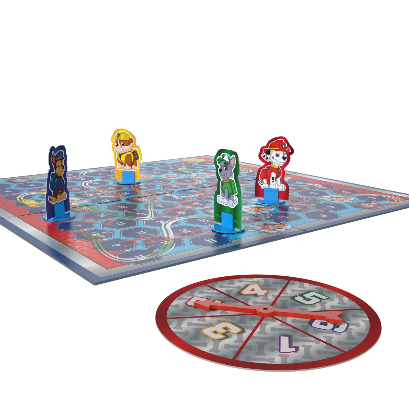 În acest joc captivant, de PATRULA CATELUSILOR, de la Spin Master Games, pentru copii cu varste de 4-8 ani, invinge primul catelus care termina misiunea! Catelusii sunt in misiune! Trebuie sa-si croiasca drumul pana in varf si sa aterizeze in punctul 100. Vor lua cateva scurtaturi, vor urca pe scari, iar conurile de trafic ii vor face sa alunece inapoi. Cuprinde 1 tabla de joc, 1 foaie de perforatie (4 miscatoare si 1 rotita), 4 suporturi pentru miscatoare, 1 sageata rotitoare (2 parti) si 1 foaie cu instructiuni