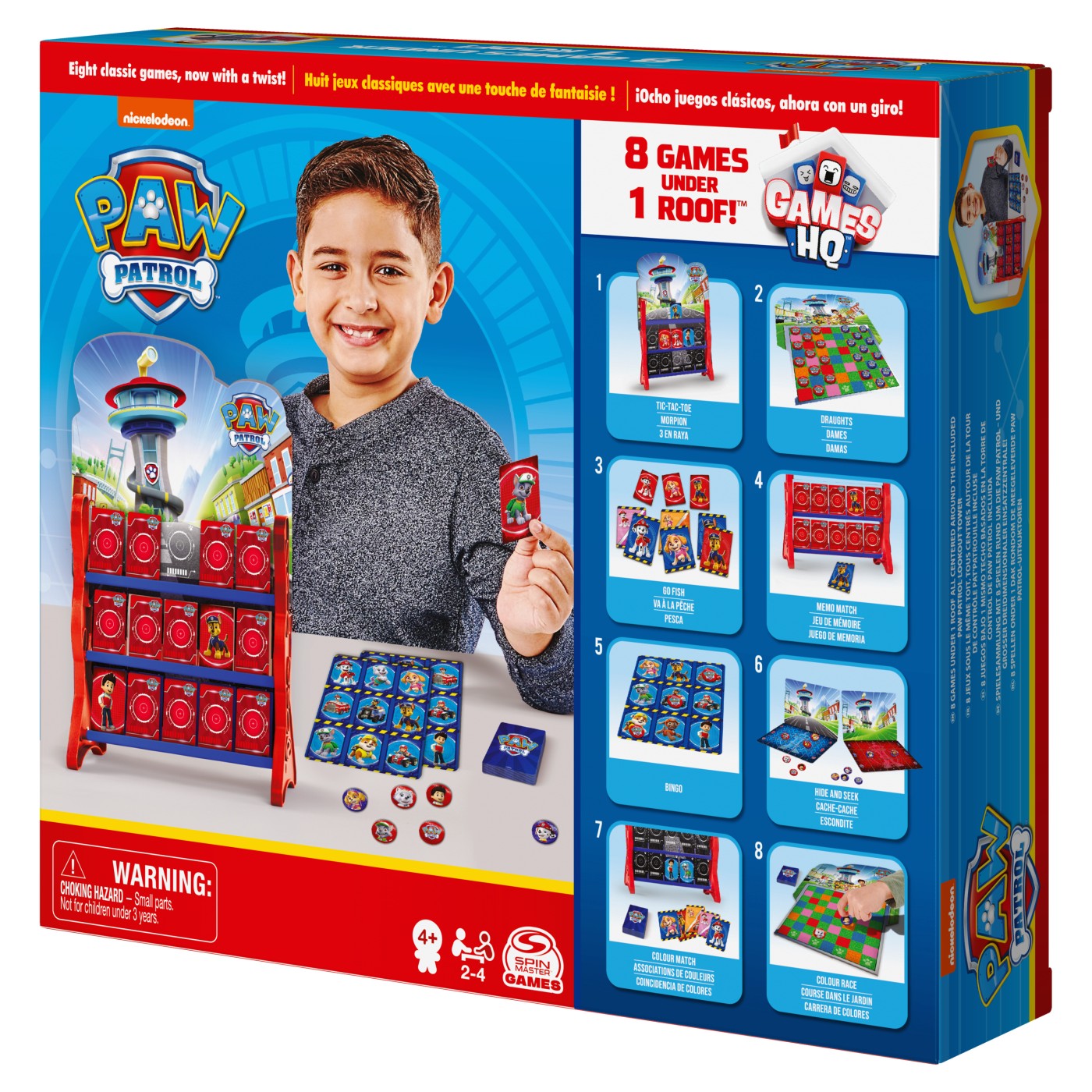 Acest joc, contine 8 jocuri clasice usor de invatat, cu tema Patrula Catelusilor. si totul vine cu o structura de casa 3D! Poti juca bingo, tic tac toe, dame si multe altele! Recomandat pentru 2-4 jucatori, cu varsta de la 4 ani si peste. Scopul acestor jocuri va ajuta la dezvoltarea abilitatilor cognitive.