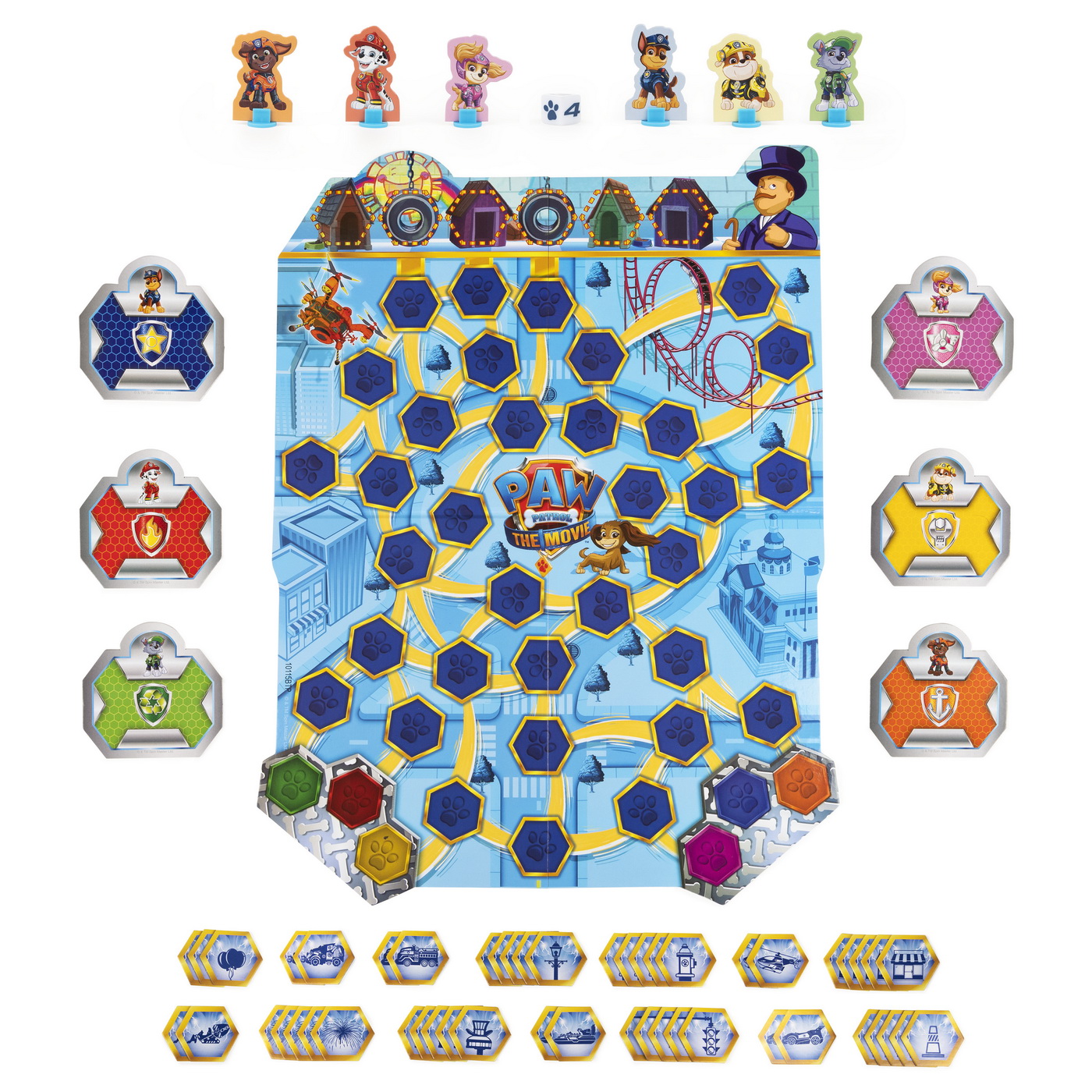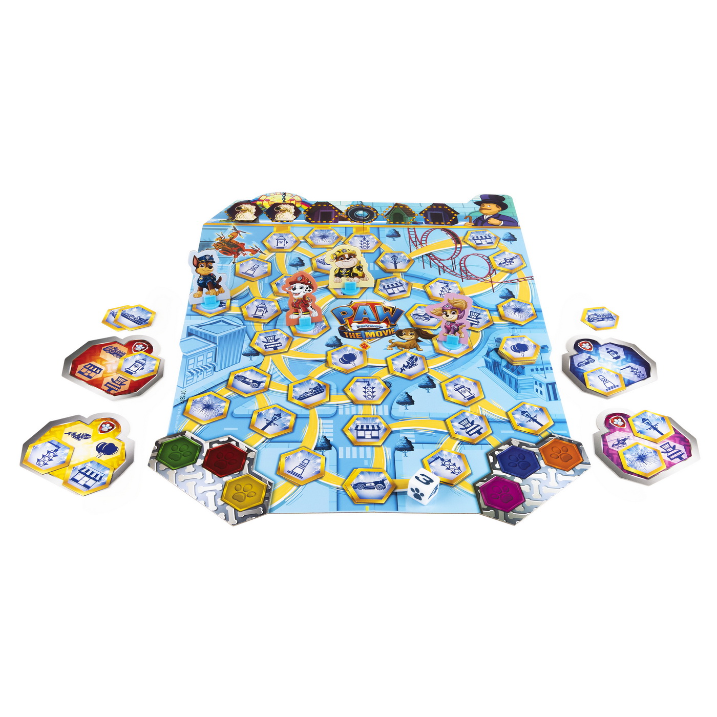Bazat pe filmul Paw Patrol Salvati orasul aventurii gasind placile de care aveti nevoie pentru misiunea catelusului dvs. si salvand puii singuri din scoala de ascultare. Consola de control Ryder Center dezvaluie in mod magic misiunea unica a cateilor. Ce piese de actiune trebuie sa gaseasca catelul tau? Fii primul jucator care gaseste si colecteaza toate cele 4 jetoane de actiune de care ai nevoie inainte ca scoala de ascultare sa se umple de pui singuri si sa castigi! Distractie usoara in interior pentru copii - reguli simple, nu este necesara citirea pentru a juca. Un joc de societate excelent pentru distractie fara ecran, la petreceri, intalniri si nopti de jocuri de familie De la 2 la 6 jucatori. Include 1 tabla de joc, 1 turn de veghe, 1 consola centrala Ryder, 6 personaje cu standuri, 50 jetoane de actiune, 6 carti de misiune, 2 clipuri, matrita si instructiuni.