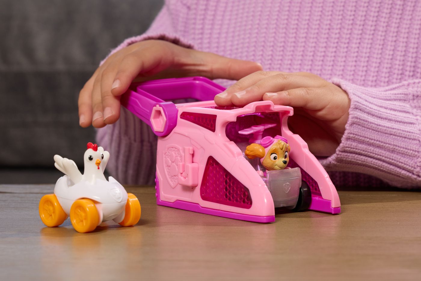Setul Patrula Catelusilor Figurina Si Vehicul Cu Lansator aduce actiunea din serial direct in camera copilului, oferind o experienta dinamica de joaca inspirata din misiunile echipei de salvare. Fiecare set include un vehicul tematic si un lansator special conceput pentru a trimite rapid masina in actiune, recreand scene spectaculoase de interventie. Designul colorat, inspirat din universul Patrula Catelusilor, si detaliile autentice ale personajelor transforma fiecare sesiune de joaca intr-o aventura plina de energie. Exista mai multe modele disponibile, fiecare cu un catelus diferit si vehiculul sau specific, ideal pentru colectare si combinare intre ele. Setul stimuleaza imaginatia, coordonarea si jocul de rol, fiind potrivit pentru copii de peste 3 ani. Acest pachet contine figurina Skye.