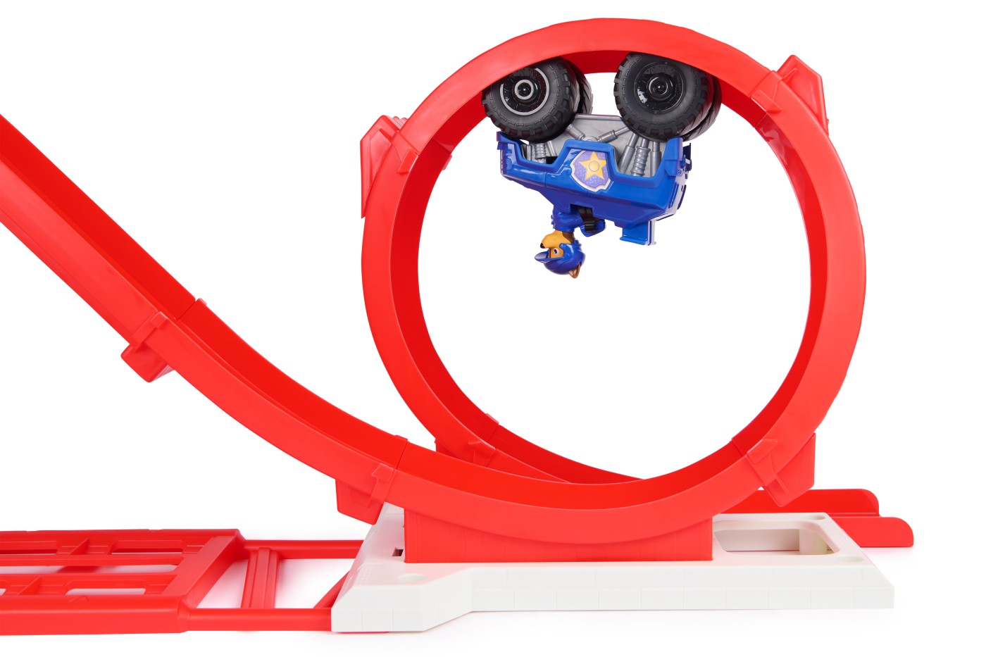 La post se află Chase și mașina lui de poliție, gata să prindă viteză pe rampa gigantică și să străbată bucla spectaculoasă pentru a ajunge la destinație. Roti uriașe, detalii realiste și un design robust fac din fiecare cursă o aventură de neuitat.