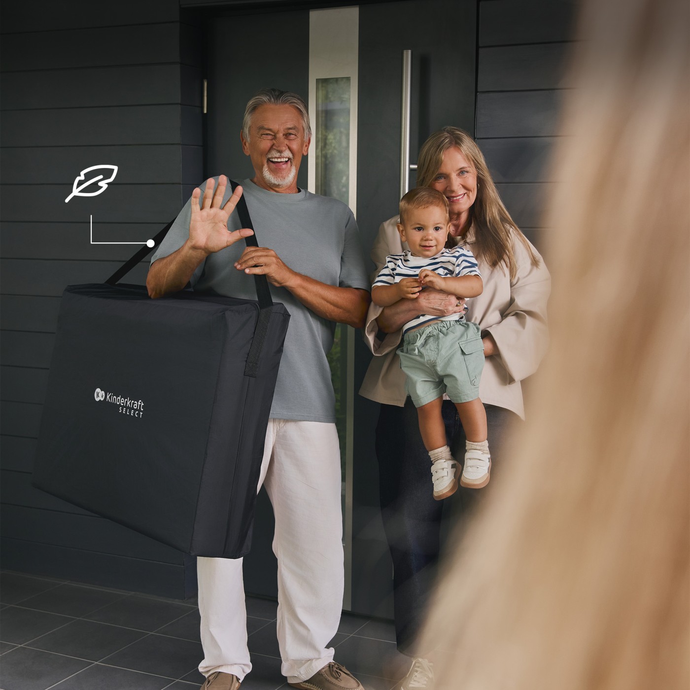 Se pliază, se așază în geantă, se închide fermoarul și... ești gata de plecare! Mânerul comod face transportul o joacă, iar materialul protejează patutul de murdărie.