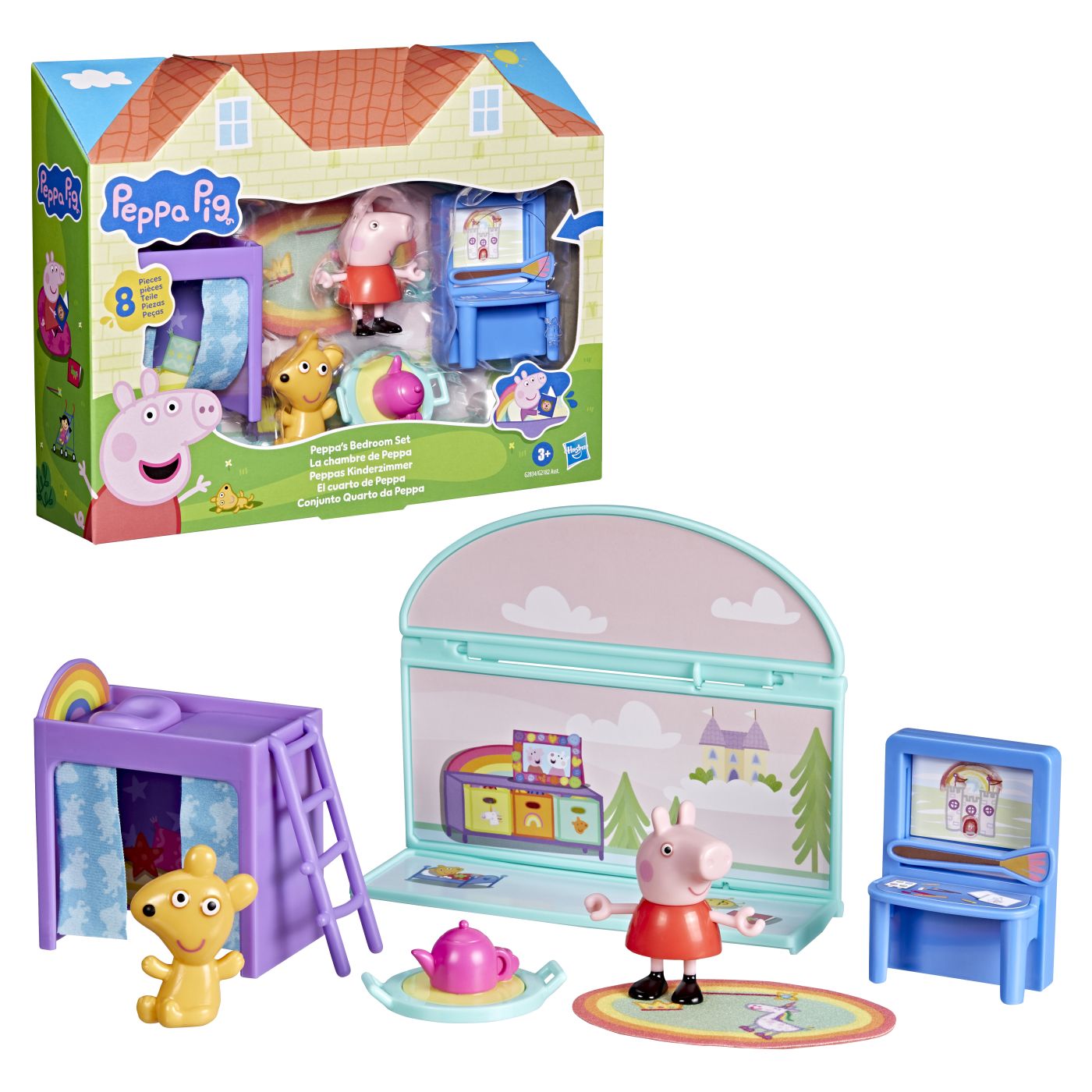 Personalizeaza, imagineaza-ti si joaca-te cu setul de accesorii pentru camera Peppa Pig! Fiecare set include o figurina de aproximativ 7,5 cm si accesorii tematice care permit copiilor sa amenajeze o camera din casa Peppei. Copiii pot recrea scenele preferate din serial sau pot inventa propriile aventuri pline de imaginatie. Piesele pot fi folosite individual sau adaugate la setul de joaca Casa Peppa Pig (se vinde separat, in functie de disponibilitate) pentru a personaliza si extinde spatiile de joaca. Setul incurajeaza jocul de rol, creativitatea si dezvoltarea imaginatiei, fiind potrivit pentru copiii de la 3 ani in sus. Acest pachet include un set de joaca Dormitorul Lui Peppa.