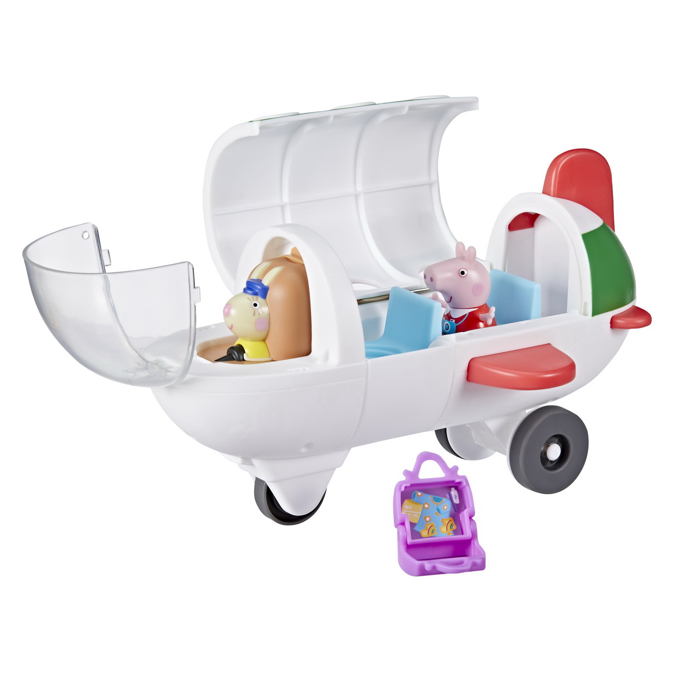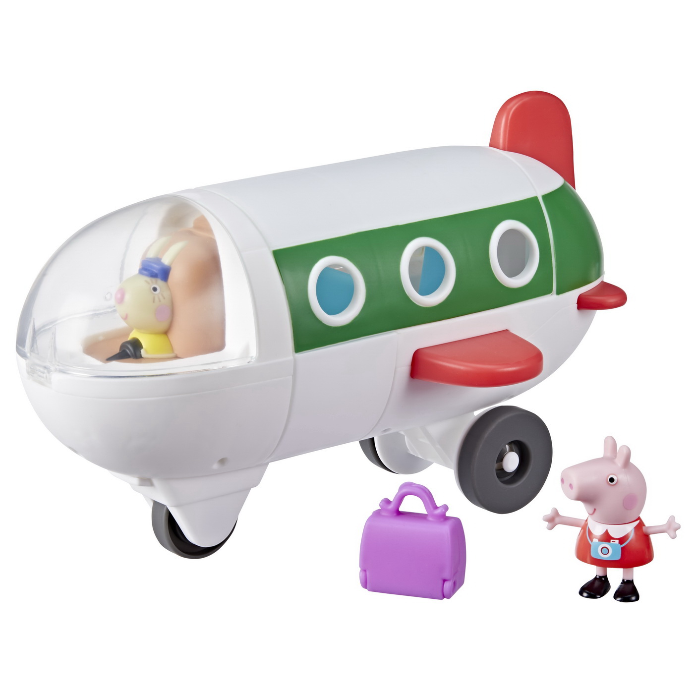 Setul include o figurină Peppa Pig și o siluetă Miss Rabbit așezată în cabina de pilotaj. Miss Rabbit poate fi rotită pentru a „decola” spre noi aventuri, iar copiii pot inventa povești amuzante și călătorii fantastice.