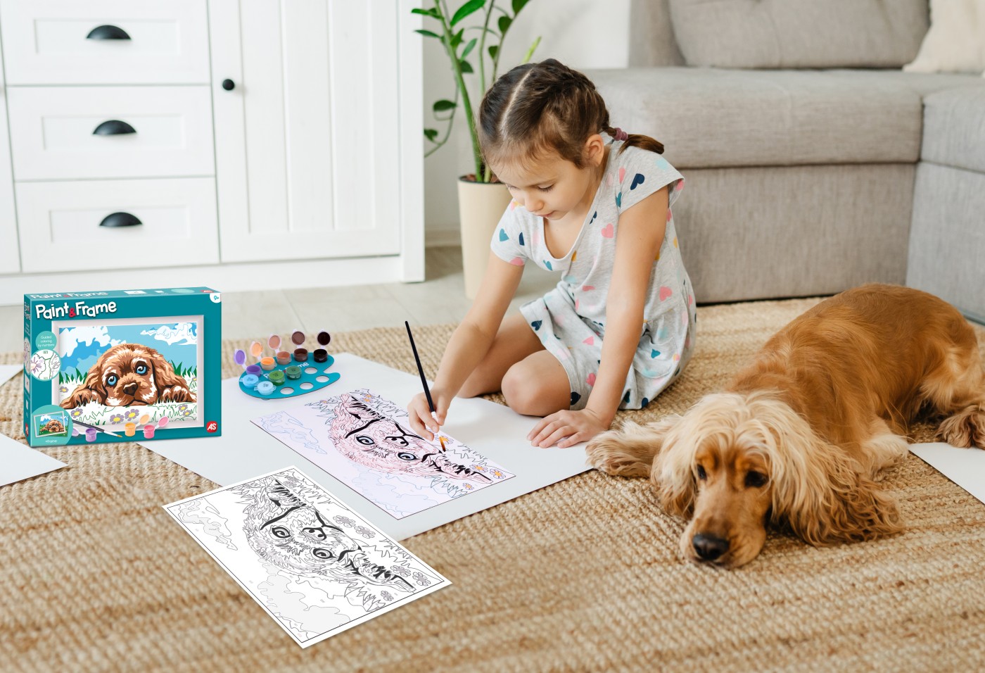 Pictează și înrămează Căţeluşul iubitor transformă pictura într-o joacă ușoară și relaxantă! Copiii urmează culorile numerotate pentru a umple tabloul cu nuanțele potrivite, dezvoltând abilități artistice și motricitate fină.