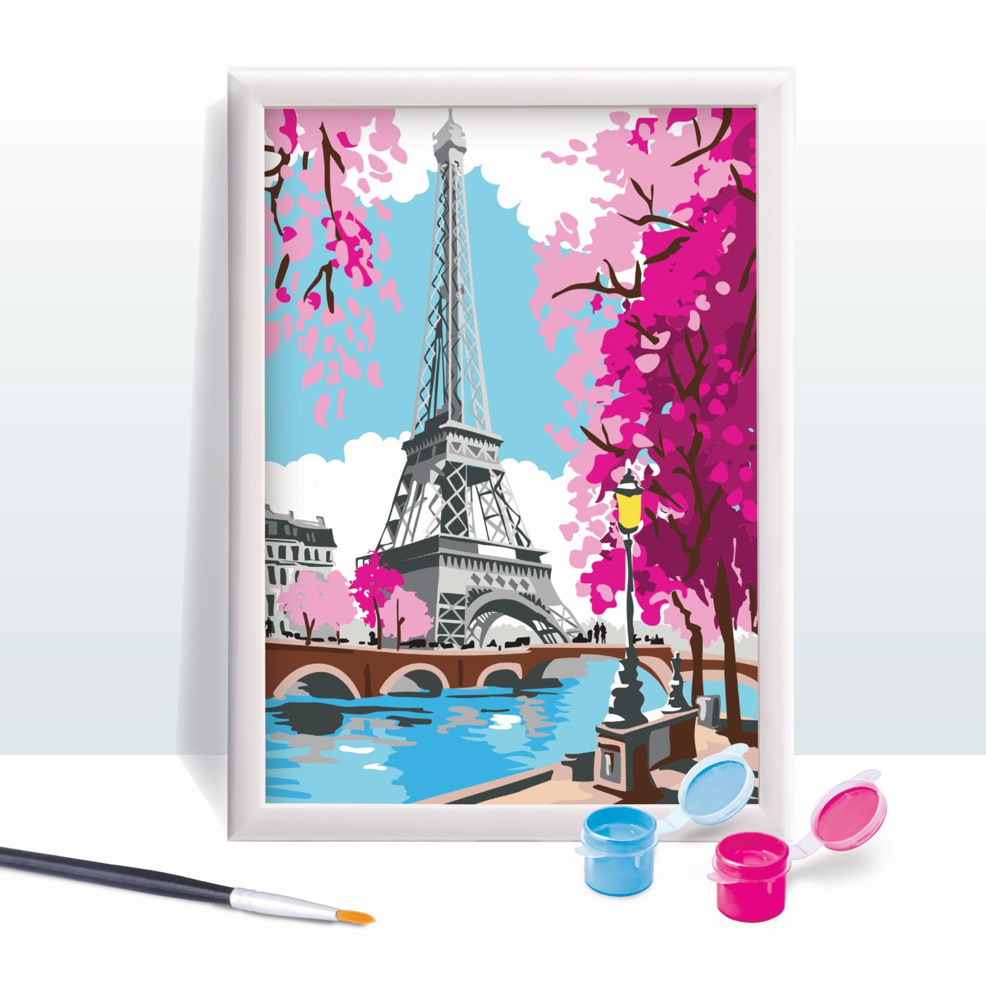 Kitul conține toate cele necesare pentru o experiență artistică completă: ramă, pensulă, culori acrilice și model preimprimat. Perfect pentru micii artiști care visează la Paris!