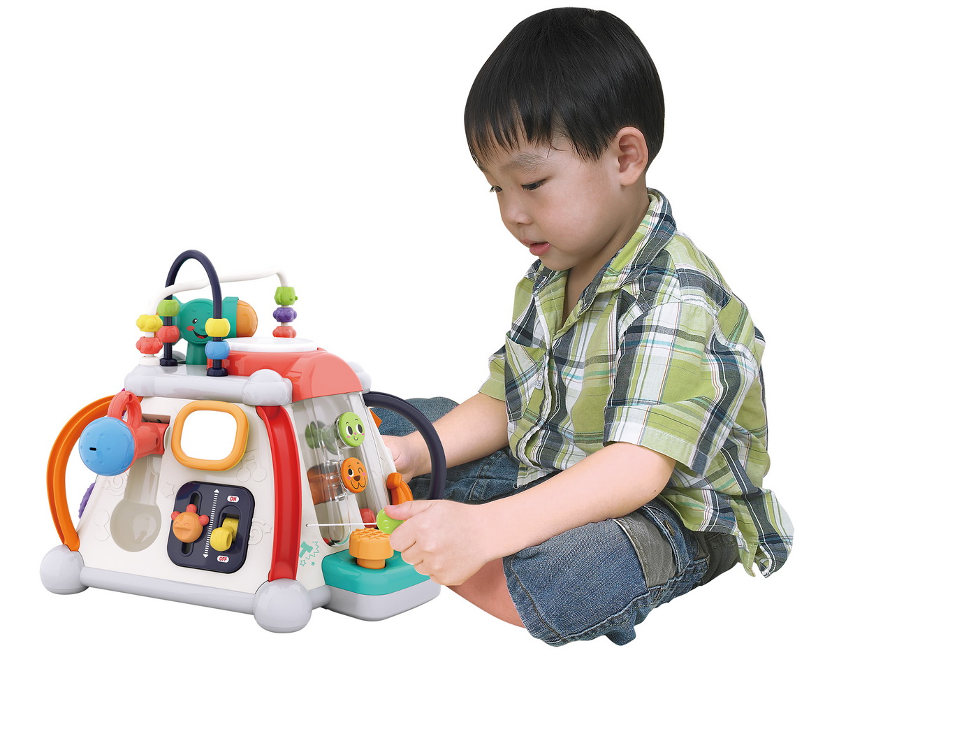 🎲 Piramida cu activități și sunete de la HolaToys este o jucărie multifuncțională care transformă joaca într-o experiență educativă completă. Fiecare latură este plină de surprize – de la rotițe, forme și butoane, până la sunete interactive și lumini care captează imediat atenția celor mici.