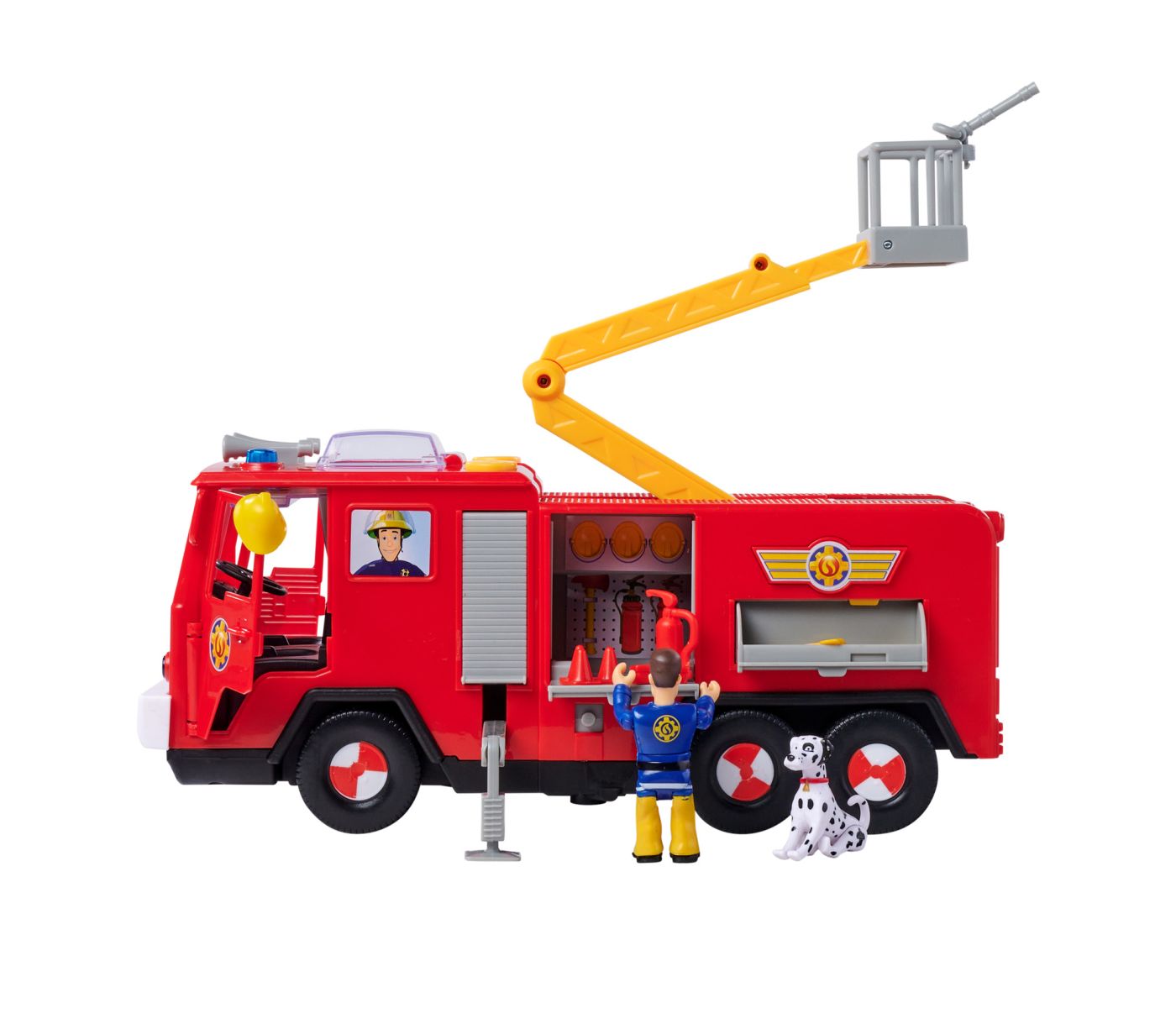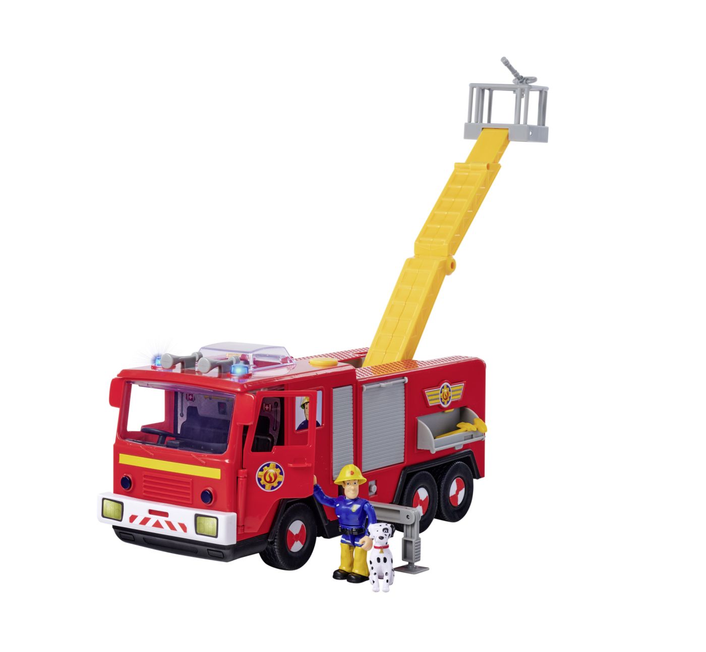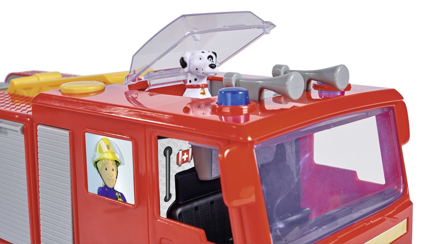 Camionul de pompieri Jupiter este vehiculul central al lui Pompierul Sam, mereu pregătit să intervină în situații de urgență. Cu o lungime de 31 cm, Jupiter este impunător și dotat cu detalii care îl fac să pară gata să iasă din serial direct în camera copilului.