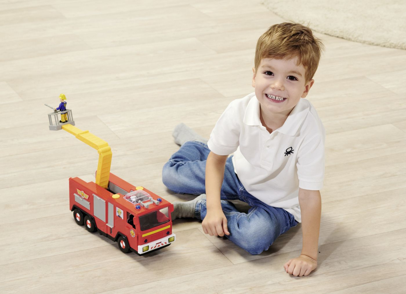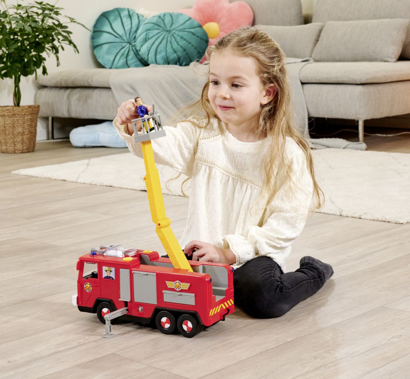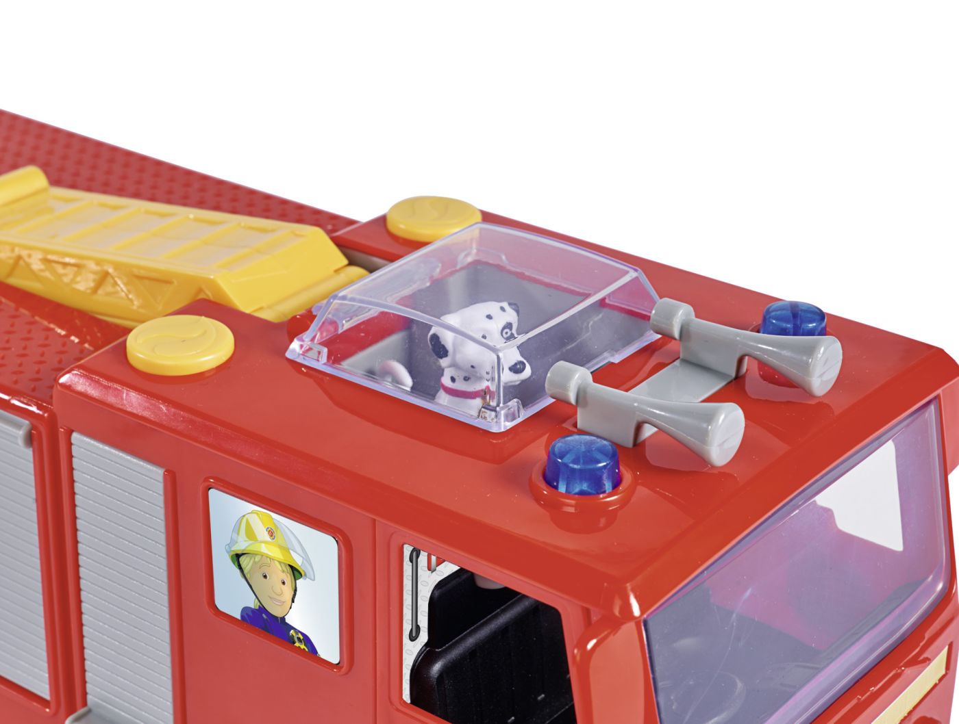 Camionul de pompieri Jupiter este vehiculul central al lui Pompierul Sam, mereu pregătit să intervină în situații de urgență. Cu o lungime de 31 cm, Jupiter este impunător și dotat cu detalii care îl fac să pară gata să iasă din serial direct în camera copilului.