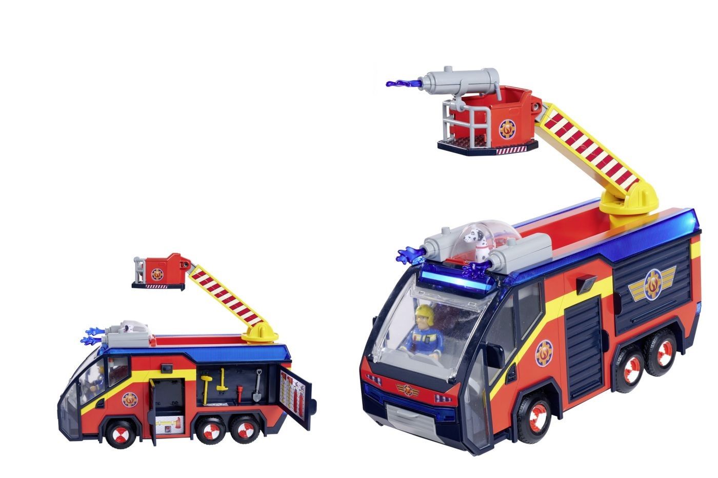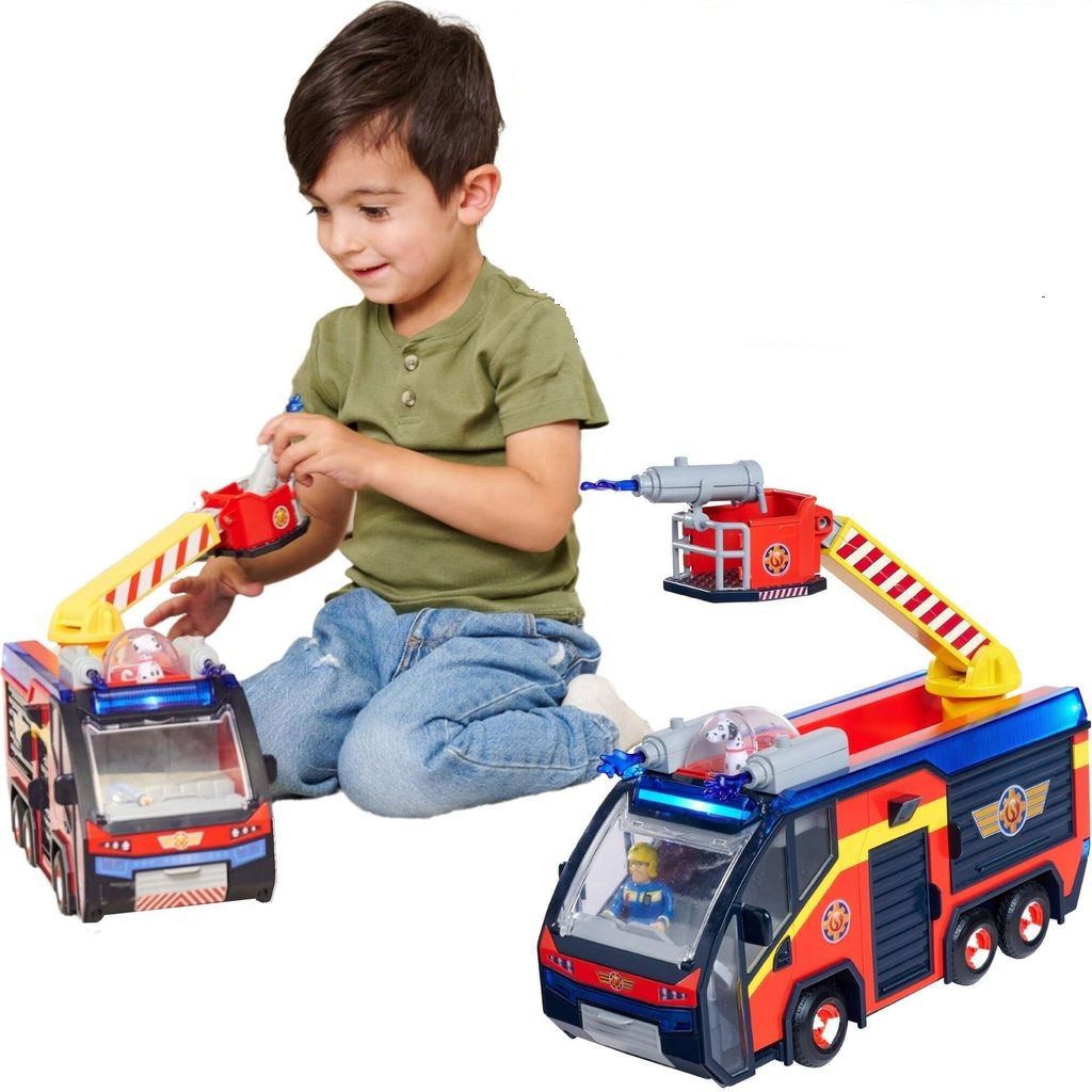 Cel mai cunoscut vehicul al lui Pompierul Sam, legendara masina de pompieri Jupiter, revine intr-o versiune moderna, inspirata fidel din Sezonul 14 al indragitului serial. Jupiter este echipata cu o scara de pompieri rotativa, care poate fi extinsa si intoarsa in toate directiile, completata de sageti de apa din plastic pentru actiuni realiste de stingere. Vehiculul include o platforma speciala pentru ATV, un compartiment de depozitare functional pentru echipamentele de interventie si o cabina superioara ce se deschide pentru a gazdui cainele Radar si figurinele eroilor. Efectele sonore realiste si iluminarea spectaculoasa la 360° adauga o nota autentica fiecarei misiuni de salvare. Setul include vehiculul Jupiter, figurina Pompierul Sam, cainele Radar si accesorii tematice. Cu numeroase piese mobile si detalii atent realizate, acest set ofera nenumarate posibilitati de joaca si recreeaza perfect scenele din serial. Cu Pompierul Sam Jupiter cu figurine, copiii se pot transpune in lumea eroilor din Pontypandy si pot trai aventuri pline de curaj si imaginatie.