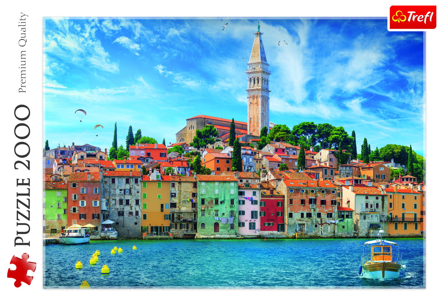 Puzzle-ul „Rovinj, Croația” de 2000 de piese surprinde perfect esența acestui oraș-port de pe coasta Adriaticii. Clădirile viu colorate, turnul impunător al bisericii și marea turcoaz creează un tablou de neuitat – perfect de reconstruit piesă cu piesă.