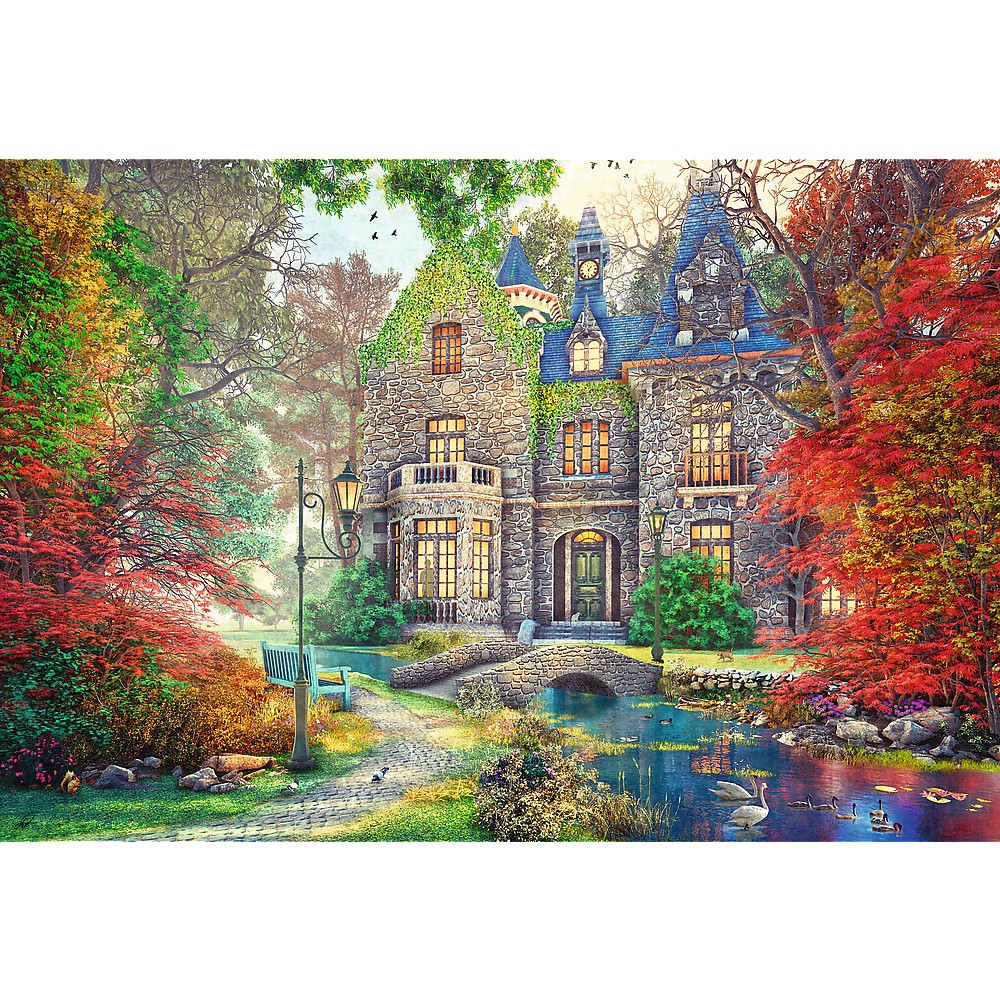 Puzzle-ul surprinde un peisaj de toamnă plin de farmec: un conac impunător în mijlocul unei grădini colorate, cu un mic pod și lac liniștit, reflectând nuanțele spectaculoase ale frunzelor. Este un tablou perfect pentru serile liniștite în familie sau o pauză de relaxare creativă.