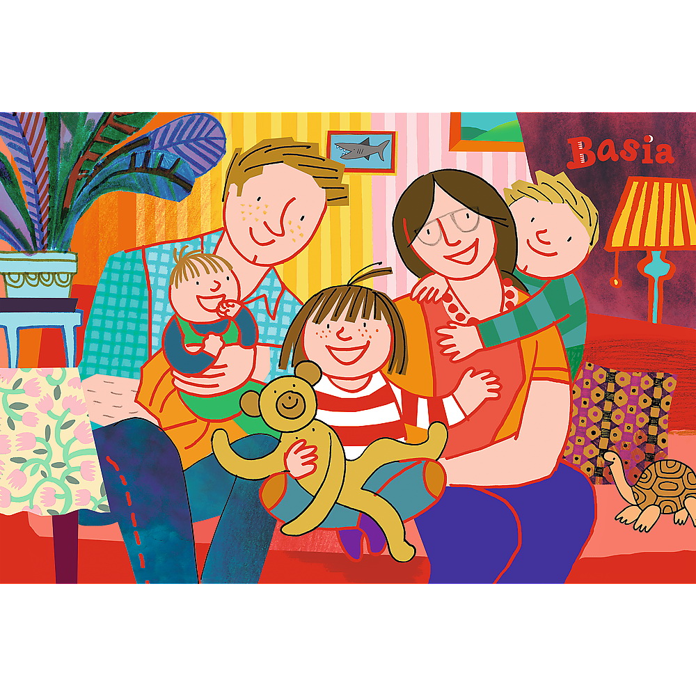 Faceți cunoștință cu Basia, o fetiță veselă care trăiește aventuri alături de familia ei! Acest puzzle cu 160 de piese aduce în fața copiilor o scenă familiară, caldă și veselă, ilustrată în stilul cărților cu Basia îndrăgite de cei mici. 👧👨👩👧👦