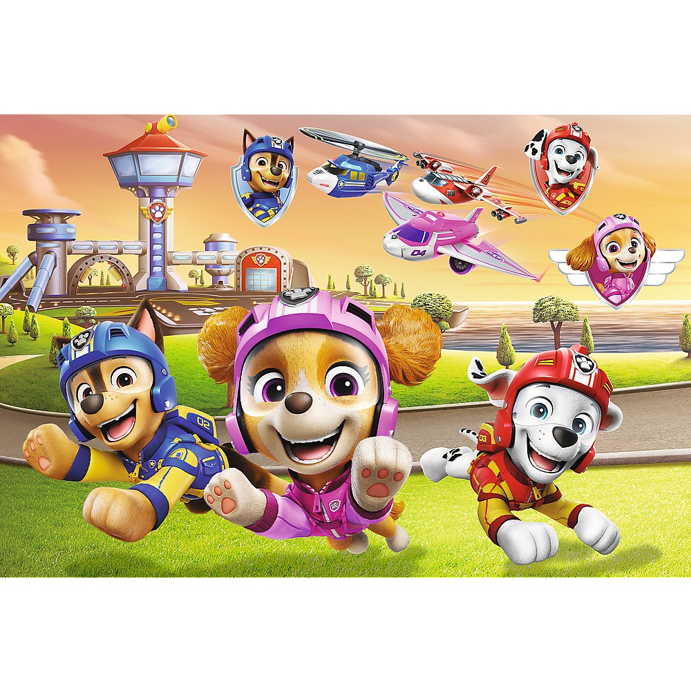 Skye, Marshall, Chase și restul echipei zboară deasupra orașului, într-o imagine animată și veselă care inspiră curaj și spirit de echipă. Culorile sunt vii, iar fundalul aerian plin de detalii dă energie fiecărei sesiuni de joacă.