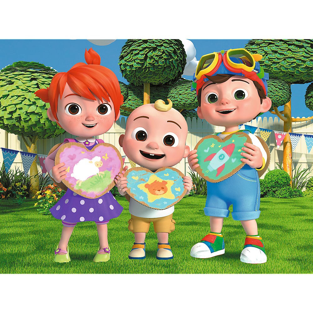 Puzzle-ul surprinde o scenă prietenoasă cu cei mici din CoComelon jucându-se împreună, zâmbind și bucurându-se de o zi însorită. Ilustrațiile sunt colorate și pline de detalii care atrag imediat atenția celor mici. 🌼🎨