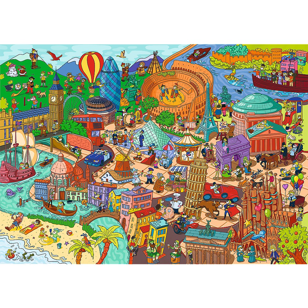 Pregătit să devii detectiv? 🔍 Acest puzzle haios te provoacă să găsești 20 de obiecte pierdute într-o Europă… foarte animată! 🇪🇺🧩