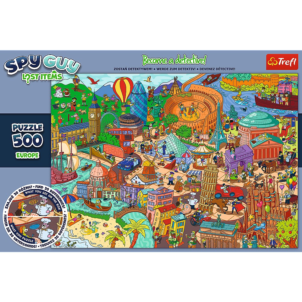 🔎 Puzzle-ul Spy Guy de la Trefl transformă fiecare piesă într-un indiciu! Asamblează cele 500 de piese și descoperă o lume colorată și amuzantă, în care personajele par scoase dintr-o poveste plină de mistere și aventuri. Fiecare colțișor din imagine ascunde un detaliu de observat și o provocare de rezolvat.