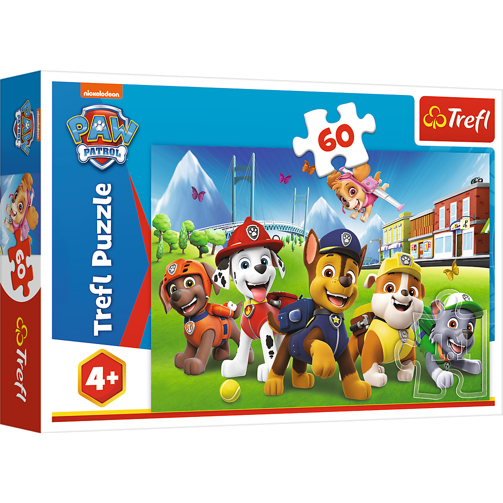🌞 E o zi perfectă de joacă, iar membrii Patrulei Cățeilor sunt pregătiți să aducă zâmbete și voie bună! Acest puzzle cu 60 de piese de la Trefl redă o scenă plină de energie, ideală pentru copiii peste 4 ani.