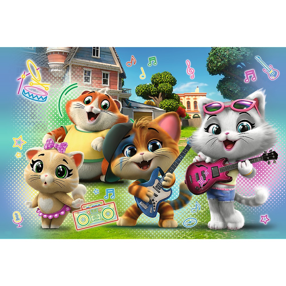 Trupa Pisicilor vine cu energie, ritm și distracție! Puzzle-ul este format din 24 de piese mari, ușor de mânuit de către copiii de peste 3 ani. După asamblare, imaginea veselă măsoară 60x40 cm și îi aduce pe toți eroii blănoși în prim-plan! 🧩