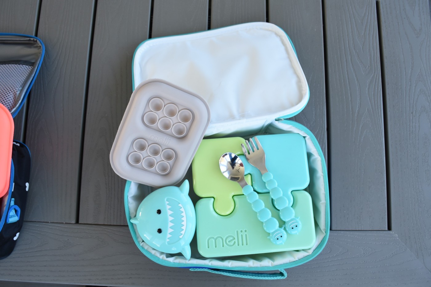 Recipientul de hrană Melii model Rechin nu doar că arată super cool, dar este și extrem de practic pentru părinți. Fie că e vorba de rondele de orez, fructe sau biscuiți, acest rechin simpatic le va ține la adăpost până la momentul gustării.