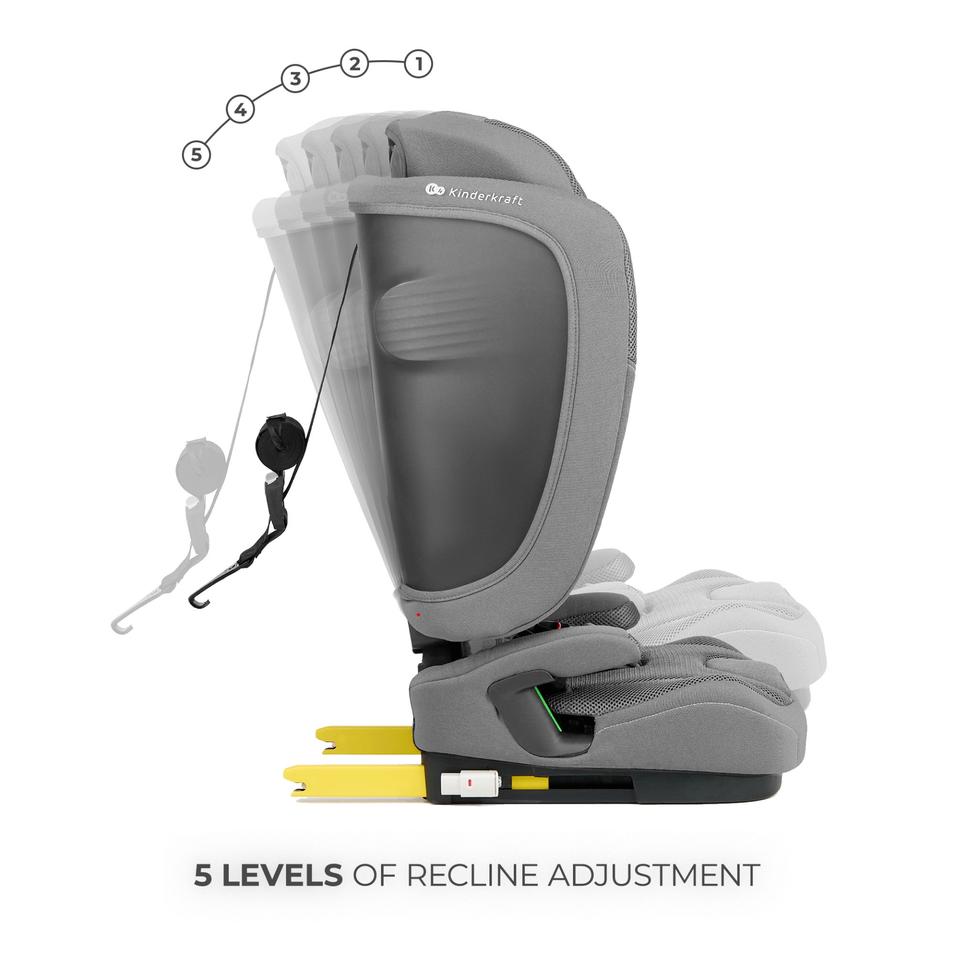 Toate funcțiile scaunului KINDERKRAFT FIX2GO i-Size GREY: