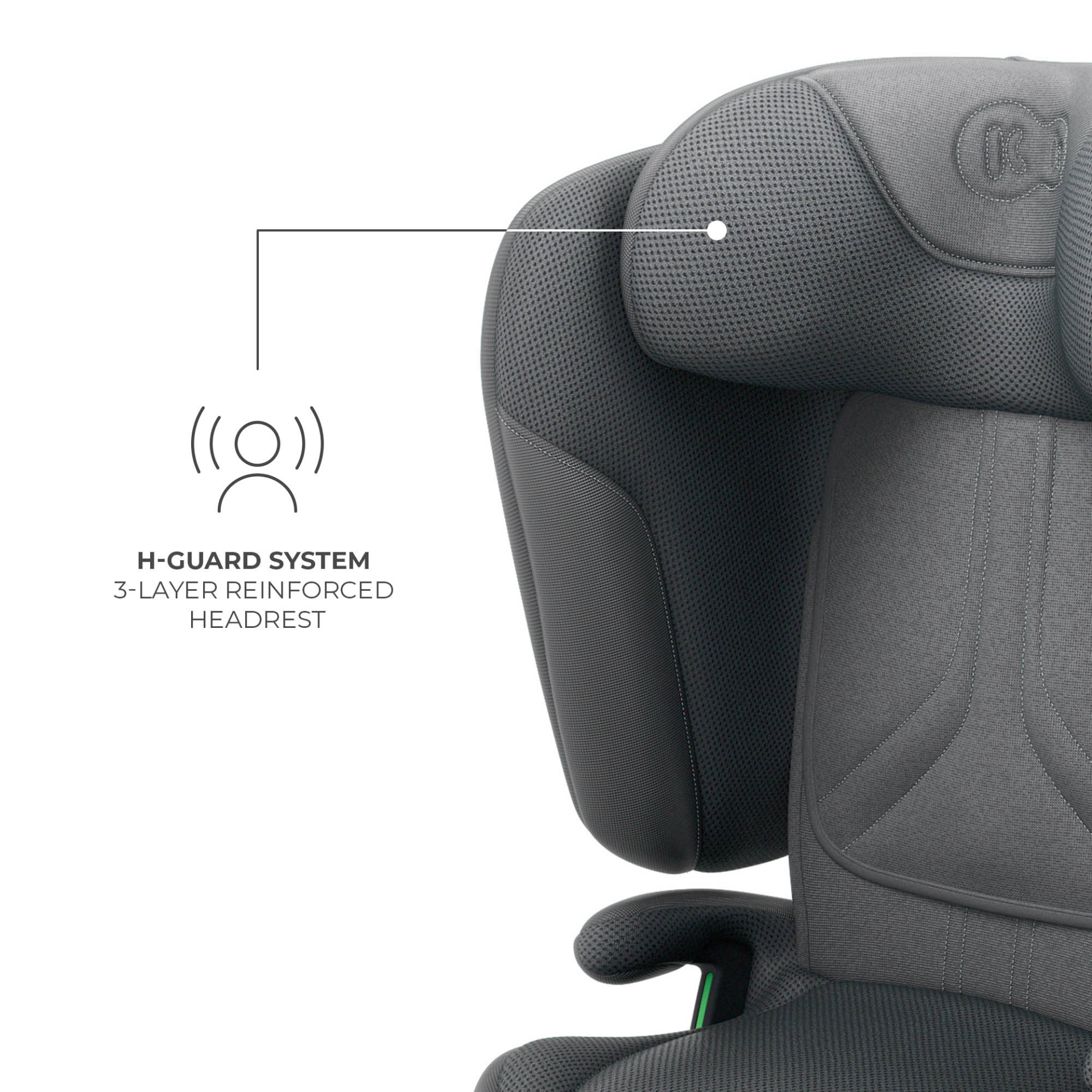 Scaunul este echipat cu sisteme de siguranță SPS+ și H-GUARD, care absorb eficient energia impactului. Cotierele ergonomice asigură un plus de confort, iar tetiera reglabilă permite adaptarea scaunului pe măsură ce copilul crește.