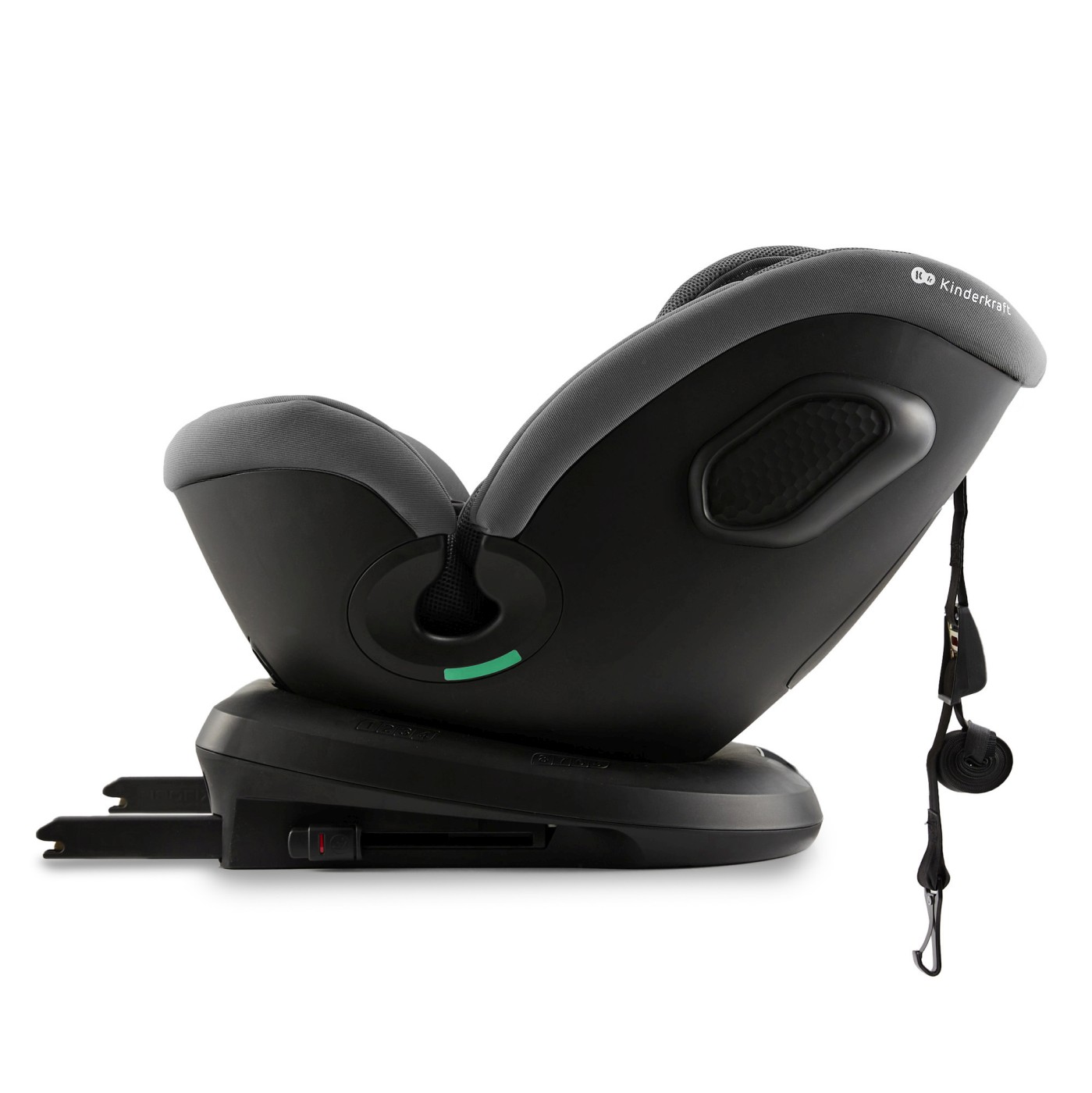 🔒 Instalarea în mașină se face rapid cu sistemul ISOFIX și centura TOP TETHER. Fixarea corectă este confirmată de indicatori vizuali (verde/roșu), care îți oferă siguranță și control dintr-o privire.