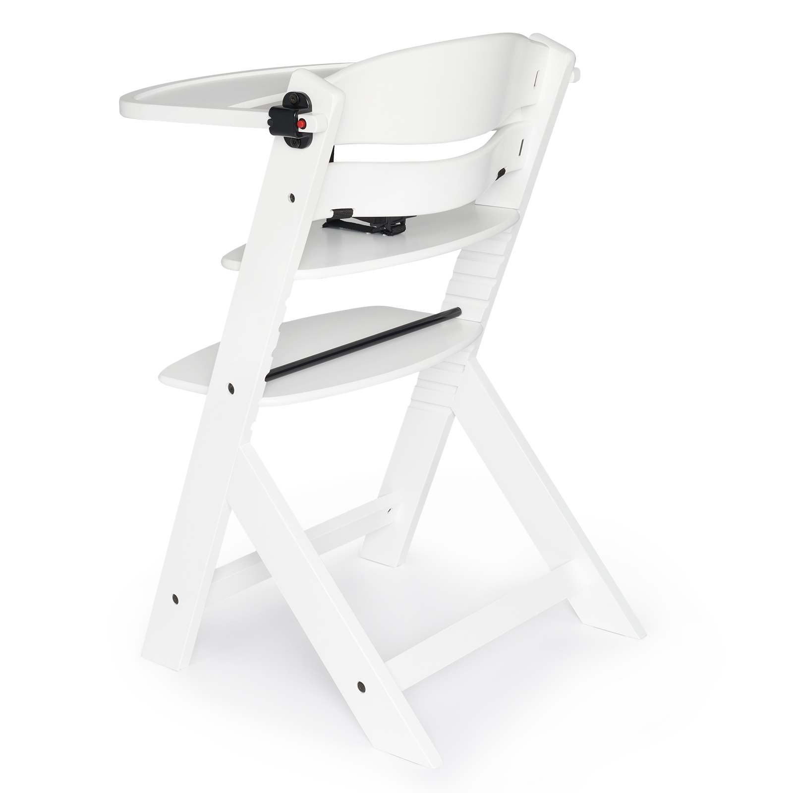 Suport pentru picioare reglabil: 4 trepte la scaunul înalt, 3 la cel de hrănire
