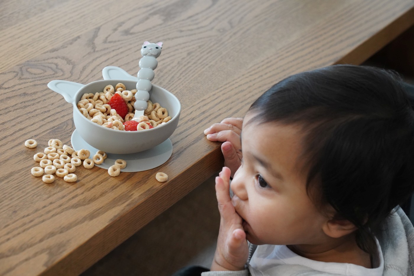 Castronelele sunt realizate din 100% silicon sigur pentru copii, iar ventuza se fixează ferm pe orice suprafață plată – nu se ridică, nu se răstoarnă, nu “zboară” de pe masă.