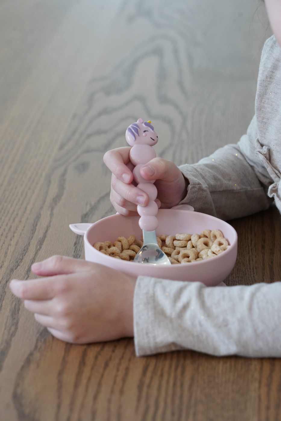 - Ajută la alimentația independentă: Bolurile Melii cu ventuză model unicorn sunt 100% din silicon și vor încuraja alimentația independentă și dezvoltarea abilităților motorii fine. Diferitele designuri cu animale oferă o asociere pozitivă cu ora mesei. Bolul rămâne pe loc, indiferent cât de tare încearcă mâncăciosul tău să îl arunce pe podea. Excelent pentru bebeluși și preșcolarii care învață să se hrănească singuri. Se potrivește cu toate scaunele înalte.