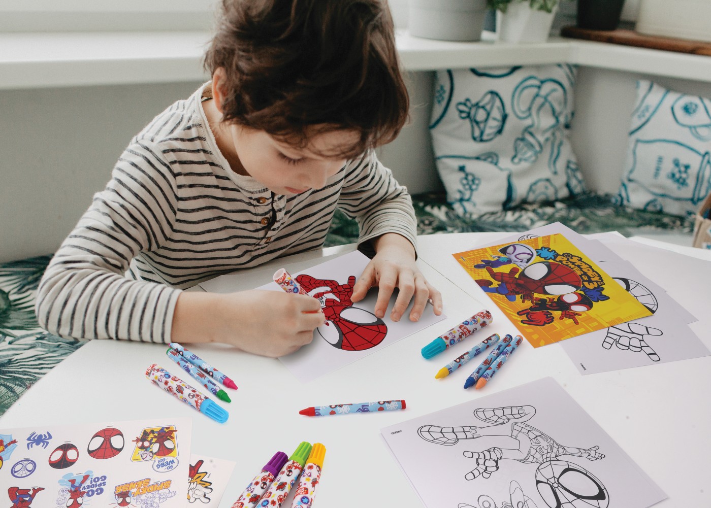 Ideal pentru micii fani ai supereroilor care iubesc să deseneze, acest set stimulează imaginația, coordonarea și expresivitatea. Copiii pot colora alături de Spidey, urmând șabloanele sau inventând propriile povești de acțiune.