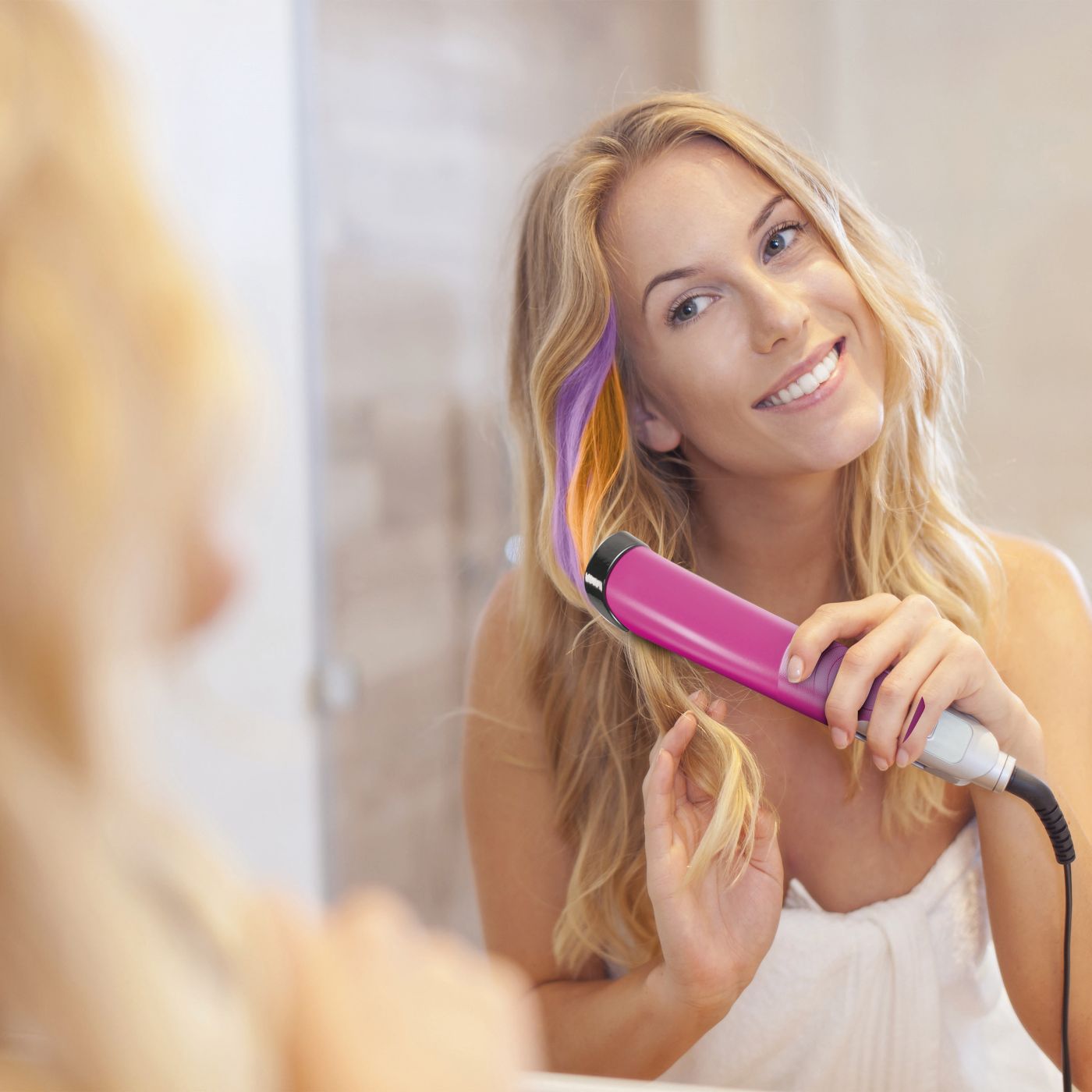 Creati coafuri uimitoare in culorile curcubeului cu noua trusa de colorare a parului de la Crazy Chic! Aparatul de coafat are un aspect modern, cu design profesional si este prevazut cu cartuse de culoare usor de schimbat. Totul se depoziteaza ordonat in statia de lucru inclusa. Cu o mare varietate de nuante si tonuri, este usor de folosit si le va permite fetelor sa experimenteze cu diferite look-uri. Setul include un set suplimentar de margele pe care le puteti folosi pentru a va ridica si personaliza si mai mult stilul!