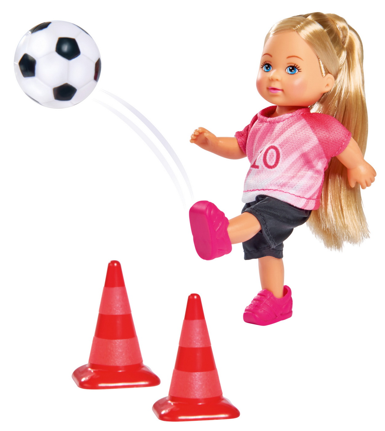 Evi, sora mai mica a lui Kevin si Steffi, intr-o tinuta sportiva de fotbal. Kevin o invata pe Evi sa joace fotbal si aduce 2 stalpi si o minge de fotbal. Evi, mica regina a driblingului, stapaneste cu maiestrie cursul de slalom.