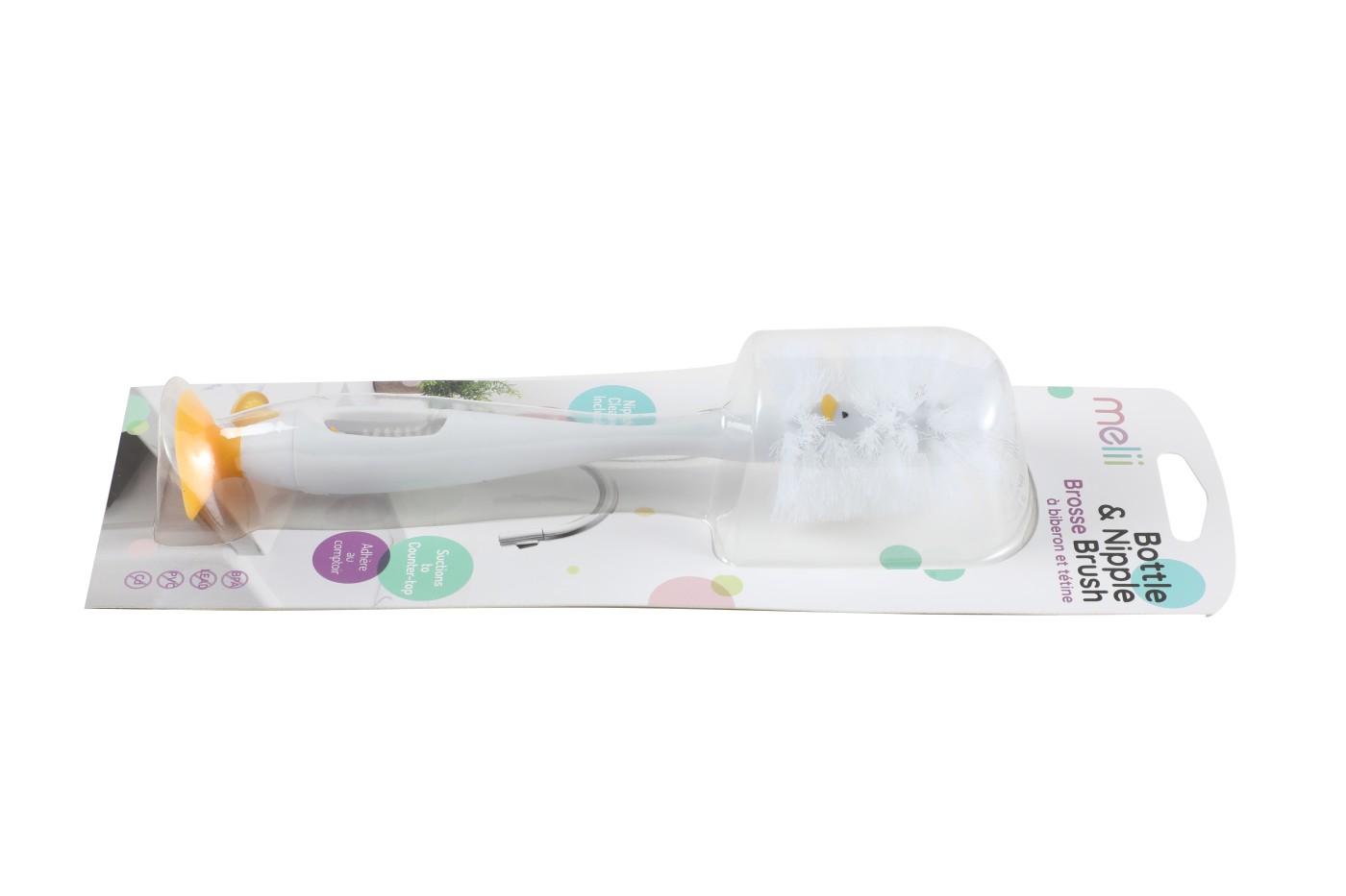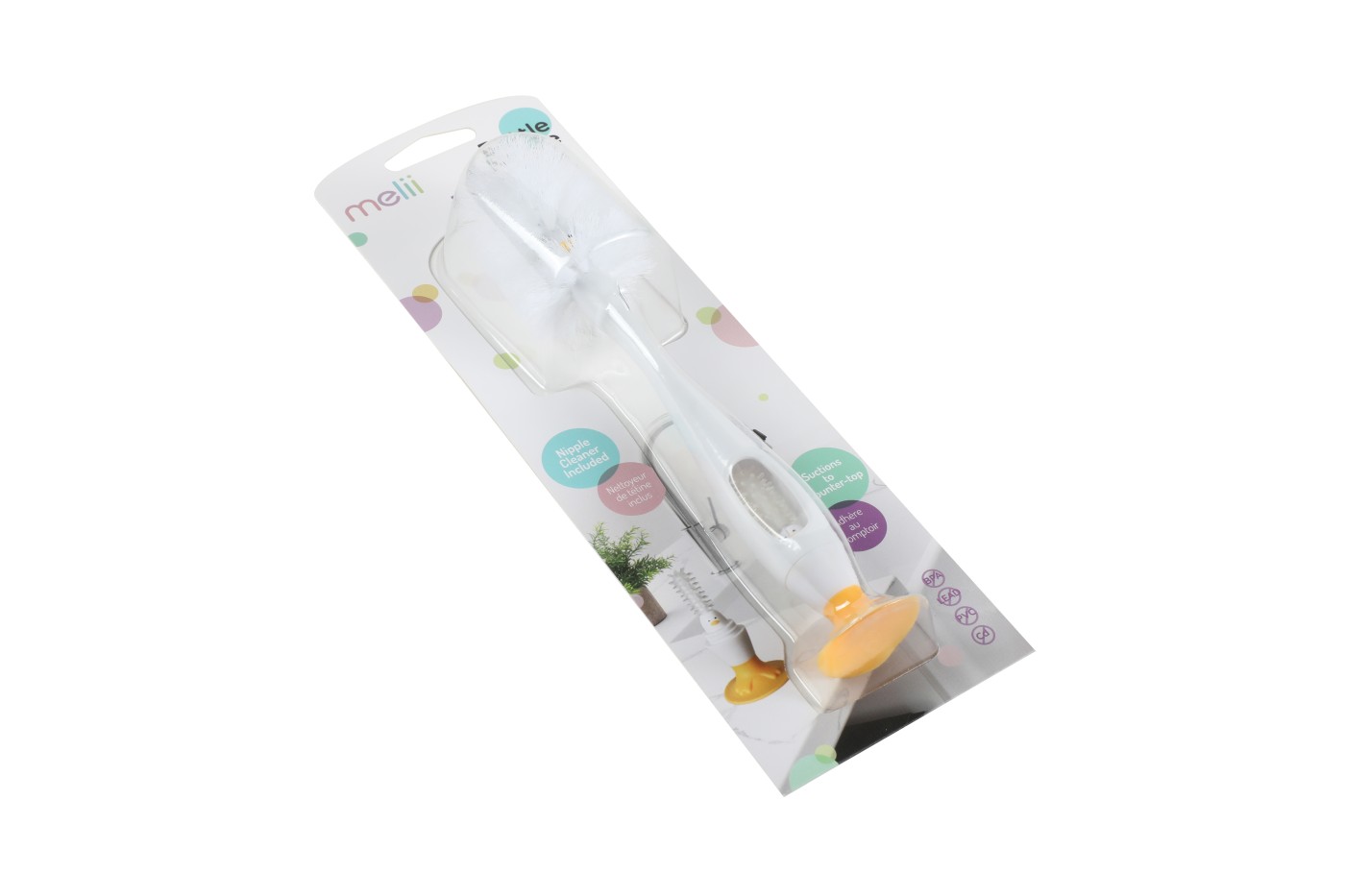 Transformă rutina de curățare într-o activitate plăcută cu acest set adorabil Melii pentru biberoane și tetine! Designul său funcțional vine însoțit de o bază ventuză în formă de rață, perfectă pentru a păstra peria vertical, igienic și la îndemână.