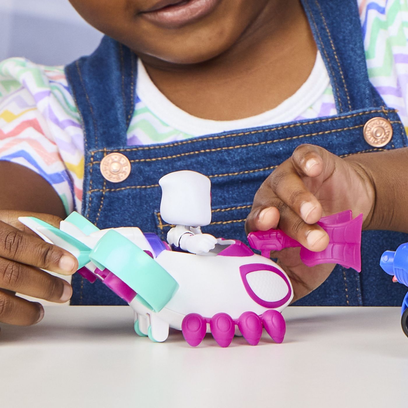 Setul cu Figurina Si Vehicul de jucarie din seria Marvel Spidey si Prietenii Sai Uimitori, conceput pentru copii de la 3 ani in sus, care transforma fiecare moment de joaca intr-o aventura plina de actiune. Include un vehicul colorat si o figurina de aproximativ 7,6 cm care poate fi asezata in interior, permitand copilului sa isi imagineze misiuni rapide si interventii spectaculoase. Designul inspirat din universul Marvel este usor de recunoscut, iar dimensiunile adaptate mainilor mici fac jucaria usor de manevrat in timpul jocului. Vehiculul este realizat din materiale rezistente si este ideal pentru recrearea scenelor preferate sau pentru inventarea unor povesti noi pline de imaginatie. Acest tip de jucarie incurajeaza jocul de rol, dezvoltarea creativitatii si coordonarea copilului, fiind potrivit atat pentru joaca individuala, cat si pentru colectii tematice din universul Spidey. Acest pachet contine figurina Ghost Spider si vehiculul Copter.