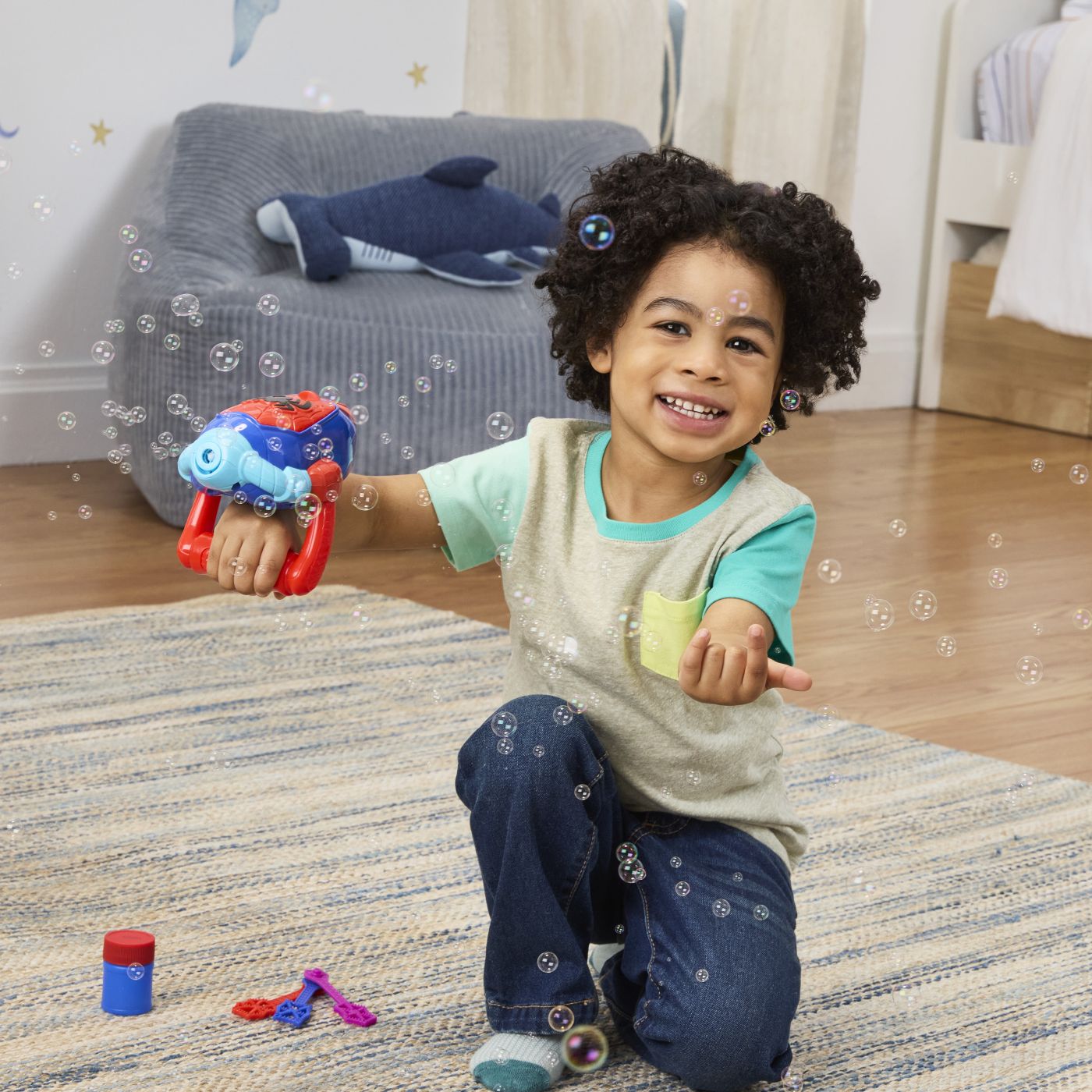 Imagineaza-ti ca te legeni pentru a salva situatia cu acest aparat de facut bule Marvel Spidey si uimitorii sai prieteni! Copiii cu varsta de 3 ani si peste se pot costuma in Spidey si se pot preface ca salveaza situatia cu suflanta electronica de bule. Umpleti jucaria pentru facut bule cu solutia inclusa, apoi apasa manerul pentru a apasa butonul si a imprastia un jet de bule! Include, de asemenea, trei baghete de bule stivuibile, cu design si decor inspirate de serialul Disney Jr. Vine si cu 1 sticla de solutie de bule si 1 palnie pentru reincarcare rapida. Cauta mai multe jucarii Marvel Super Hero pentru baieti si fete de colectionat, de oferit cadou, inclusiv jucarii cu apa pentru copii, jucarii cu bule, vehicule de jucarie, figurine si seturi de joaca! Jucariile Spidey sunt cadouri Marvel cool pentru copiii prescolari!